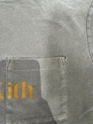 The Kith Quinn Tee Pocket T-Shirt in Men's Size XL from the FW22 collection is a stylish addition to any wardrobe. Made from 100% cotton in a relaxed fit, this beige shirt features a crew neck and short sleeves, perfect for a casual yet trendy look. The naturally distressed finish adds a touch of uniqueness, while the oversized fit and logo detail make it a standout piece. Whether you're into designer fashion or a fan of American city style with a hint of 90s hip hop, this Kith t-shirt is a must-have staple for all seasons. Suede on pocket faded off Measurements shown in photos holes shown in photos please contact if you have any questions