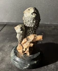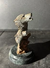 The Kitty Cantrell Legends Wolf Bust Figurine Sculpture is a handmade metal mixed media artwork featuring a 3D effect of wild wolves in a music-themed design. Created in 1994 in the United States, this limited edition piece is #330 out of 2500. The sculpture measures 5 1/8" tall 3" wide and 3" deep. The sculpture captures the essence of wildlife and art, making it a unique and collectible piece suitable for any room. About the artist: Kitty Cantrell has had a lifelong fascination with everything wild. She has studied the behaviors of animals with an artist’s eye and imagination. Her driving passion has been to capture the essence of the animals she chooses to depict in her artwork. It is her unique ability to capture the emotion of how we as the viewer feel about the animals she chooses to create, which has won her countless awards and critical acclaim. Her identification with the subject matter has led her to be one of the most widely collected wildlife artists working in the United States today. Mixed media is a combination of various fine metals such as lost wax bronze, fine pewter, brass, copper, 24 karat gold vermeil and various hot torched acid patinas such as black nickel, rose copper, and turquoise, to highlight the sculpture. In addition, the sculpture may contain embellishments such as Lucite. This piece was acquired as part of an estate sale. I am happy to answer any questions you may have.
