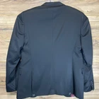 Elevate your style with this exquisite Klein Epstein & Parker blazer, crafted from high-quality Vitale Barberis Canonico Super 110s fabric in classic black. This 2-piece blazer features a peak lapel style, two-button front button style, and double-vented jacket vent style, making it a perfect fit for any occasion, be it casual, formal, business, or even weddings and parties. The blazer comes with inner pockets and custom features, and is handmade to perfection for a regular fit. The blazer is dry clean only and is made of viscose material with a silk lining material. The blazer is a solid pattern and comes in chest size 42 and waist size 42 in. With its sophisticated designer look, this blazer is the perfect addition to any wardrobe. Condition is pre-owned; item has been cleaned per manufacturer instructions. Shipped with USPS Ground Advantage.
