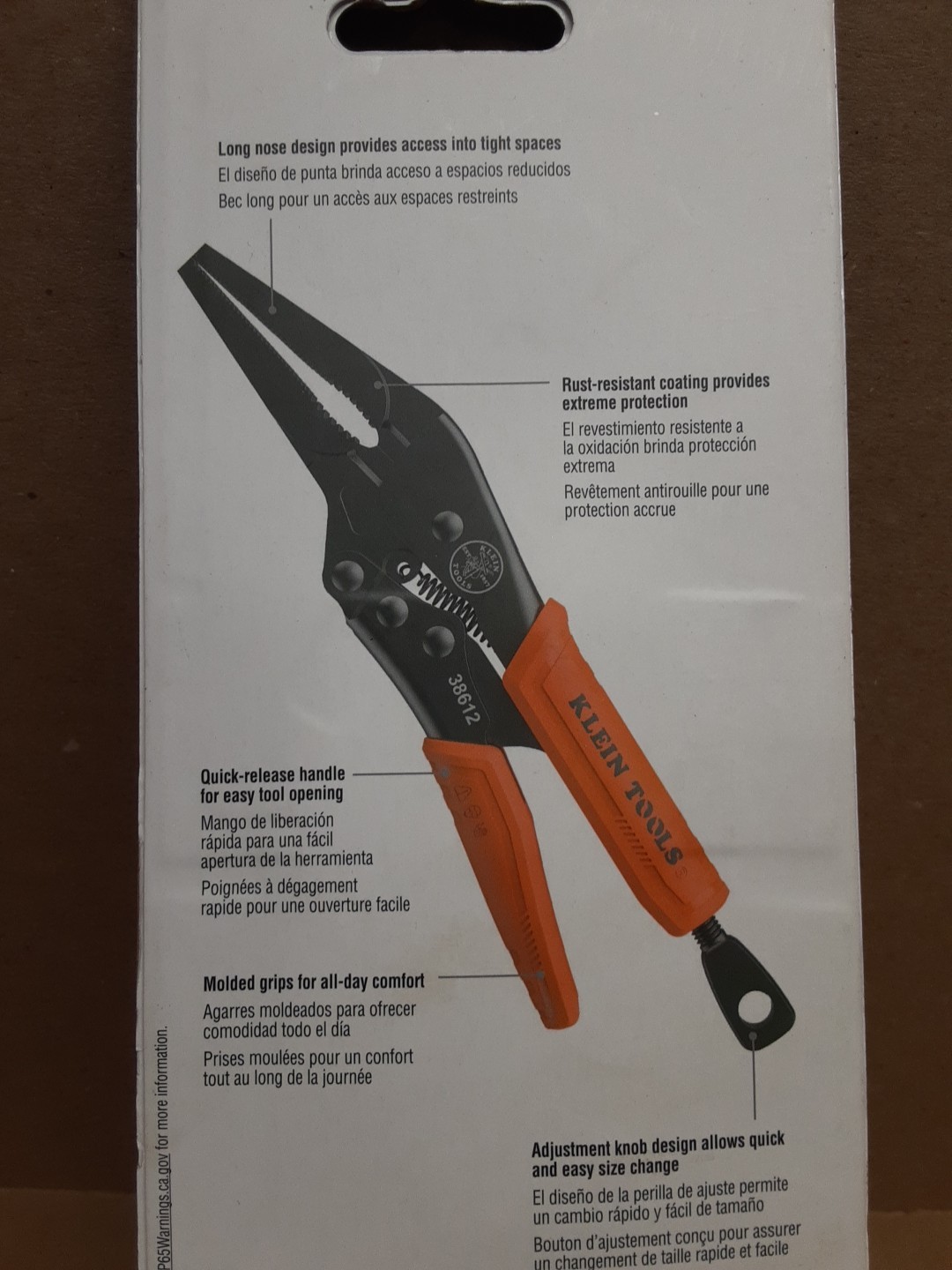 The Klein Tools 38612 Long Nose Locking Pliers with Quick Release in one size and gray color are designed for gripping tasks. Made from a blend of stainless steel and alloy steel, these pliers feature a power grip type and a quick release mechanism for easy handling. With dimensions of 9.53 inches in length and 2.23 inches in width, and weighing 0.96 pounds, these durable pliers are ideal for various home and workshop applications. The Klein Tools brand ensures quality and reliability in this essential hand tool.