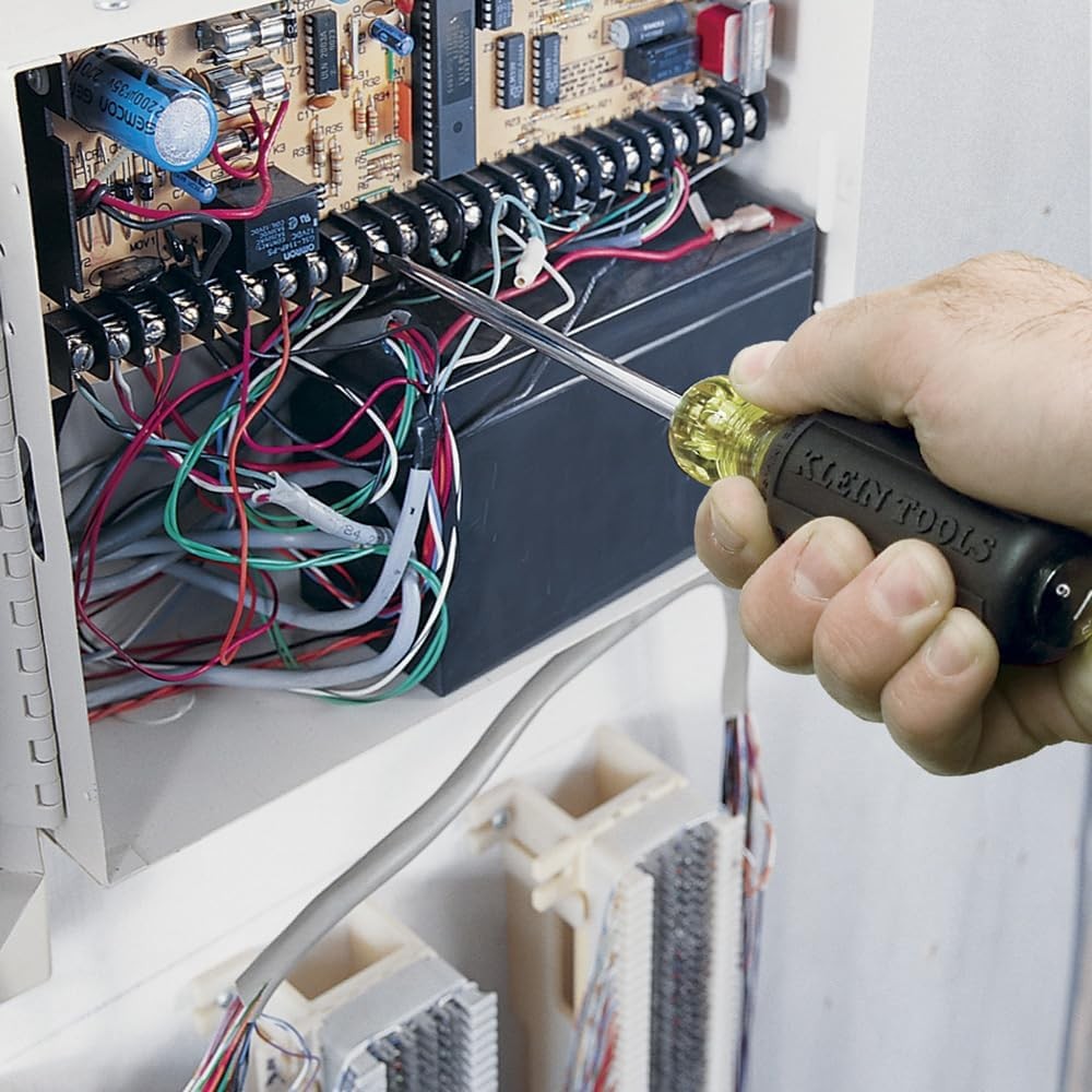Klein Tools 80031 Screwdriver Set, 5-Piece Kit Includes 2 Slotted, 2 Black Product Details Brand: Klein Tools Number of Items: 5 Head Style: Phillips, Slotted, Square Material: Alloy Steel Color: Black Recommended Uses For Product: Home Improvement, Construction Special Feature: Soft Grip Item dimensions L x W x H: 12 x 9 x 1.5 inches Item Weight: 1.1 Pounds Model Name: 80031 Head Size: #1, #2 Phillips; 1/4-Inch, 3/16-Inch Slotted, Square Manufacturer: YouTheFan Part Number: 80031 Item Weight: 1.1 pounds Product Dimensions: 12 x 9 x 1.5 inches Country of Origin: USA Item model number: 80031 Style: 5-Piece Driver Set Item Package Quantity: 1 Special Features: Soft Grip Included Components: Screwdriver Set, 5-Piece Kit Includes 2 Slotted, 2 Phillips and 1 Square Tip Screwdriver, Cushion Grip Comfort Batteries Required?: No Brand: Klein Tools Number of Items: 5 Head Style: Phillips, Slotted, Square Material: Alloy Steel Color: Black SMART BUY: A complete, high-performance kit that offers convenience and value MADE IN USA 5-PIECE SCREWDRIVER SET: Comes with the most frequently used screwdrivers ASSORTMENT OF TIPS: Include #1 and #2 Phillips, 3/16-Inch Cabinet, 1/4-Inch Keystone, and #2 Square EASY TYPE AND TIP IDENTIFICATION: Tip-Ident provides bold dome markings to quickly align screwdriver tip for greater efficiency and faster tool swapping CHROME-PLATED BLADES: Heat-treated and chrome-plated blades provide corrosion resistance and added durability throughout the life of the tool CUSHION-GRIP HANDLES: Provide greater torque and comfort for consistent and continual driving DOUBLE-FLANGE BLADES: Anchor inside handles to provide solid, twist-resistant connection for greater torque This 5-Piece Klein Tools Screwdriver set features a selection of frequently used screwdrivers. The Keystone-Tip Screwdrivers are designed for demanding applications with a bolster reinforced shank for hard use. Klein's 3/16-Inch Cabinet Tip Screwdriver features a narrow cabinet tip to make tight spaces easily acceptable. The #1 Phillips 3-Inch round Shank Screwdriver is precision-machined for an accurate fit and torque without slippage. Cushion-Grip handles allow for greater torque and comfort. #2 Square-Recess Tip Screwdriver features a 4-Inch shank. For more than 160 years, Klein Tools has manufactured premium-quality, professional-grade hand tools that deliver the performance, durability and precision needed to get the job done right. Our family of engineers, workers and craftsman continue to put six generations of expertise into every tool we create by using only the highest quality materials, superior workmanship, and keeping manufacturing as close to home as we can. Klein isn't just the name of our company, it's also our family name. And since we're an American company that's family-owned and family-run, you know you can count on us to be here tomorrow. Klein Tools doesn't just make great products, we make great products that stand up to the demands of the professionals who use them every day ... Since 1857.