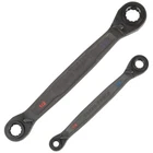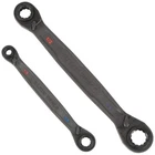 Klein Tools 68216 4-in-1 Ratcheting Wrench Set, SAE, 2 Pc. Manufacturer: Klein Tools Part Number: 68216 The Klein Tools Ratcheting Box Wrench Set features eight sizes for working in confined spaces and on long studs. The color-coded wrenches feature a 90-tooth ratchet mechanism to minimize the return angle for maximum access for a 20-Percent improvement on 72-tooth ratchets. Ergonomic handle with recessed areas for your thumb or index finger to rest naturally to reduce fatigue. Features: 90-tooth ratchet mechanism to minimize the return angle for maximum access with 20-Percent improvement on 72-tooth ratchets Reverse ratcheting action with the switches on each end of the wrench Ergonomic handle with recessed areas for your thumb or index finger to rest naturally to reduce fatigue Color-coded size markings to easily identify each unique working end of the tool Eight total hex sizes in just two wrenches for increased job efficiency Forged steel I-beam style handle Specifications: Material: 6140 Steel Finish: Black Phosphate Sizes: 1/4'' x 3/8'', 5/16'' x 7/16'', 1/2'' x 5/8'' , 9/16'' x 3/4'' Tip Type: Double-Ended Ratcheting Tip Style: Swing Arc 4° & 12-Point About the Manufacturer Since 1857, the company operated by Mathias Klein and his descendants to the fifth generation, has grown and developed along with the telecommunications and electrical industries where Klein pliers first found major usages. Today, Klein Tools, Inc. represents much more than Klein pliers. The company's product line has broadened to include virtually every major type of hand tool used in construction, electronics, mining, and general industry in addition to the electrical and telecommunications fields. Klein Tools also supplies a line of occupational protective equipment, which is exhibited in a separate catalog. Internationally, Klein's products are available around the world through a well-established network of agents and distributors who stock the products that are required for their particular markets. Klein's reputation as a leading producer of professional-quality products is global. Like the industrial fields it serves, Klein Tools has grown dramatically since 1857. Bulk Pricing For customers who wish to order large quantities of this item and would like to receive bulk pricing, please contact us directly and we will provide the best price possible. Warranty Klein Tools, Inc. warrants that the products set forth below will be free from defects in material and workmanship, under normal use for the timeframes listed below (unless otherwise noted on the product packaging). At its option, Klein Tools will repair or replace, or refund the purchase price of, any product which fails to conform with this warranty. This warranty does not apply to damage from alterations, abuse, misuse, lack of maintenance, or normal wear and tear of the product. This warranty does not apply to batteries. All implied warranties, including, without limitation, implied warranties of merchantability and implied warranties of fitness for a particular purpose, are limited in duration to the applicable warranty period listed below. Some states do not allow limitations on how long an implied warranty lasts, so the above limitation may not apply to you. In no event shall Klein Tools be liable for incidental or consequential damages. Some states do not allow the exclusion or limitation of incidental or consequential damages, so the above limitation or exclusion may not apply to you. This warranty gives specific legal rights, and you may also have other rights which vary from state to state. The normal life of the product Hand Tools This warranty explicitly does not cover Specialty Hand Tools. See Klein Commercial and Industrial products warranty. Tool Pouches, Tool Bags, Tool Belts, Suspenders, Coolers, Soft Storage, Knee Pads This warranty explicitly does not cover climbing tool belts. See Klein Commercial and Industrial products warranty. Fish Tapes, Fish Rods, Tape Measures, Levels, Folding Rules This warranty explicitly does NOT cover cut or deliberately damaged tape, rust or corrosion or foreign material, cracked or broken cases, or bent hooks or bent/missing eyelets. Flashlights and Illumination This warranty explicitly does not cover products containing rechargeable batteries. Two years from the date of purchase Electrical Test and Measurement Tools This warranty explicitly does not cover High Voltage Test and Measurement Tools. See Klein Commercial and Industrial products warranty. One year from the date of purchase Products Containing Rechargeable Batteries (including but not limited to Flashlights, Illumination Products, Audible Entertainment, and Borescopes) Products warranted to be free from defects in materials and workmanship when delivered to the customer Consumables (including but not limited to Triple-Taps, Drill Bits, Step Drills, Carbide Hole Cutters, Hole saws and Arbors, Saw Blades and Jab Saws, disposable Razor and Knife Blades, Stripper Cartridges, Gloves, Shoe Covers, Replaceable Cutting Inserts, Wire Marker Books, Bits and Blades, Voice/Data/Video Connectors, Klein Chemicals, Hand Cleaners, and Wire Pulling Lubricants) This warranty explicitly does not cover Specialty Consumables. See Klein Commercial and Industrial products warranty.