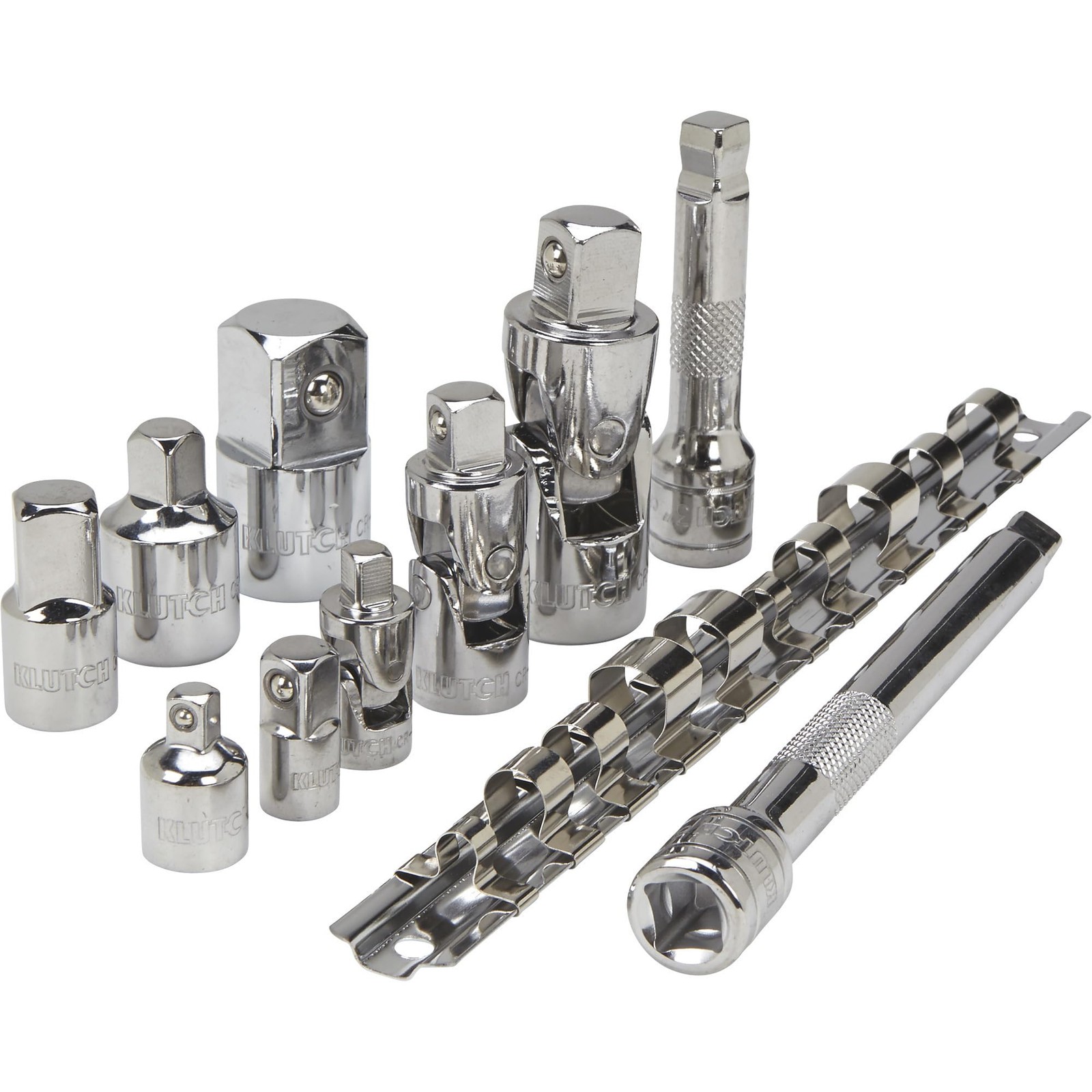 Klutch® 10-pc. set contains 5 adapters sizes 1/4in.F x 3/8in.M, 3/8in.F x 1/4in.M, 3/8in.F x 1/2in.M, 1/2in.F x 3/8in.M and 1/2in.F x 3/4M. 1/4in., 3/8in. and 1/2in. drive universal joints. 3in. and 6in. 3/8in. drive dual-position extensions. With clip rail storage. Klutch Socket Adapters, Universal Joints and Extensions, 10-Pc. SAE Set Northern Tool Item# 41405 Item Weight: 2.0000 lb(s) Manufacturer: Klutch MPN: Warranty: Lifetime Limited Warranty. Product Summary: Klutch® 10-pc. set contains 5 adapters sizes 1/4in.F x 3/8in.M, 3/8in.F x 1/4in.M, 3/8in.F x 1/2in.M, 1/2in.F x 3/8in.M and 1/2in.F x 3/4M. 1/4in., 3/8in. and 1/2in. drive universal joints. 3in. and 6in. 3/8in. drive dual-position extensions. With clip rail storage. Payment Instructions You can pay us securely through eBay. All orders will contain an invoice/receipt. IMPORTANT: We will not honor requests to remove invoices or receipts from packages. No exceptions ON U.S. PURCHASES, Northern currently collects sales tax on purchases shipped to all states except: Alaska, Delaware, Montana, New Hampshire, Oregon Shipping Information This product will be shipped by Parcel. Parcel Shipping: Ground Shipped items must be sent to a physical address and cannot be sent to PO boxes. If a PO box address is submitted without a physical address it may delay your order. We cannot ship to APO/FPO boxes. Please note that we do not ship items on weekends or holidays. More information on shipping and handling times can be found on our Store Policies Page . Customer Care We want you to be satisfied with your purchase; please notify us by email if you have any concerns. Before you send an email message, please check our Help Section . We may already have an answer to your question! We are available to answer your email questions Monday through Friday from 8am - 3pm CST, excluding holidays. If your email is sent on a weekend, holiday or after business hours, we will respond to you on the following business day. Returns may be accepted on most items within 30 days of receipt of the item. All returns require authorization from us. Some returns are charged a 15% restocking fee. Please click the Shipping and Payments tab on this item for specific return information and full details. About Our Products Product Warranty: Lifetime Limited Warranty Warranty information and contact details can be found on our Store Policies Page. We are working hard to ensure that the information provided on the eBay product advertisements is accurate and up-to-date. We reserve the right to correct ad errors and/or omissions. Pricing and availability is subject to change without notice. No