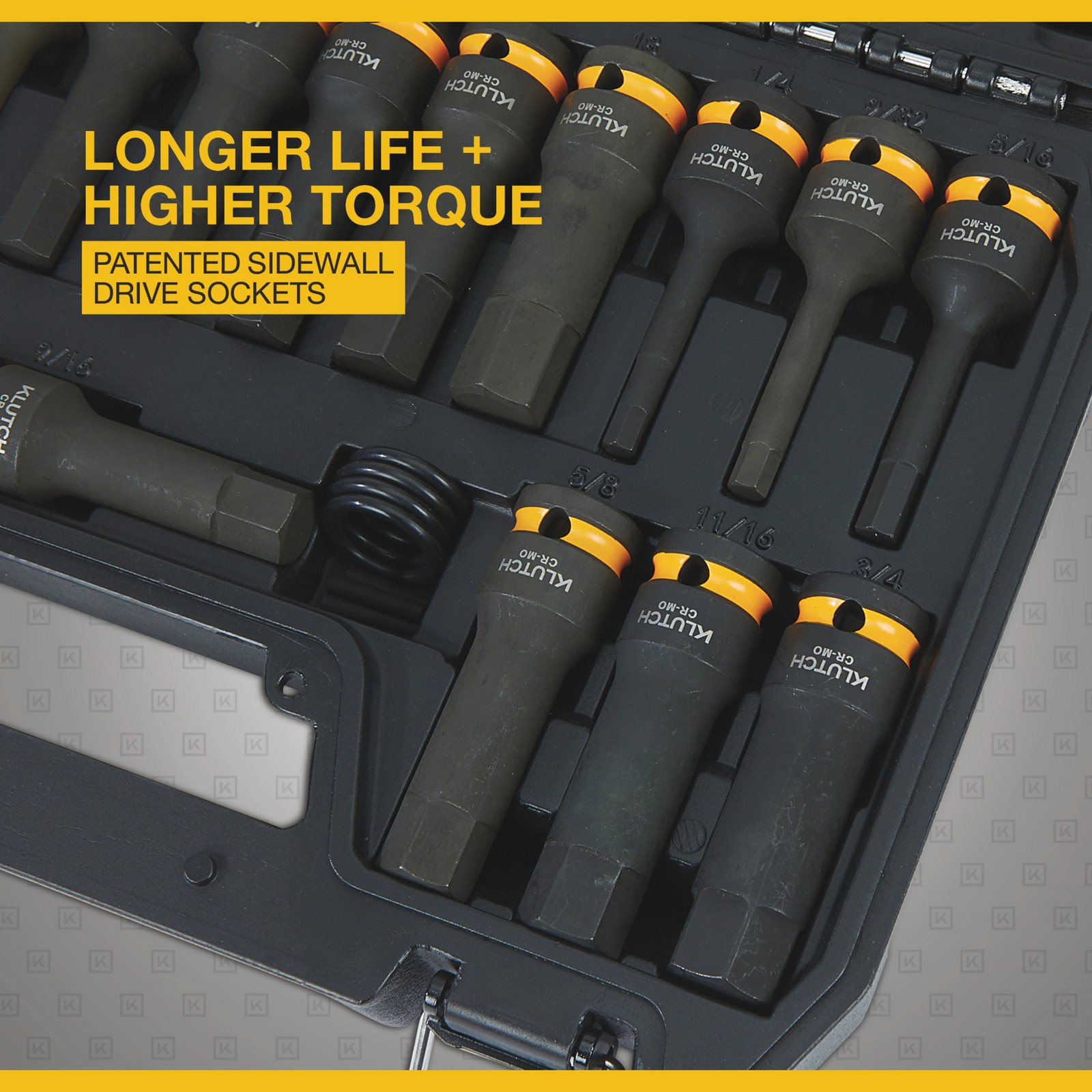 The Klutch Impact Hex Socket Set includes 18 pieces and features a 1/2in. drive. Made of high-quality chrome molybdenum steel for impact-grade toughness, this set is designed for high-torque operations. Laser-etched hi-visibility markings and ink filled collar make sockets easy to locate. Dual hole socket and included ring with locking pin ensure socket is secure, Mangnese phosphate finish resists rust and corrosion. Heavy-duty, lockable, plastic carrying case for easy portability. Storage case has sockets sizes marked for easy organization Lifetime guarantee. Klutch 1/2in. drive Impact Socket Set, Hex, 18 Pcs. Northern Tool Item# 5813730 Item Weight: 7.0000 lb(s) Manufacturer: MPN: Warranty: . Product Summary: The Klutch Impact Hex Socket Set includes 18 pieces and features a 1/2in. drive. Made of high-quality chrome molybdenum steel for impact-grade toughness, this set is designed for high-torque operations. Laser-etched hi-visibility markings and ink filled collar make sockets easy to locate. Dual hole socket and included ring with locking pin ensure socket is secure, Mangnese phosphate finish resists rust and corrosion. Heavy-duty, lockable, plastic carrying case for easy portability. Storage case has sockets sizes marked for easy organization Lifetime guarantee. Payment Instructions You can pay us securely through eBay. All orders will contain an invoice/receipt. IMPORTANT: We will not honor requests to remove invoices or receipts from packages. No exceptions ON U.S. PURCHASES, Northern currently collects sales tax on purchases shipped to all states except: Alaska, Delaware, Montana, New Hampshire, Oregon Shipping Information This product will be shipped by Parcel. Parcel Shipping: Ground shipped items must be sent to a physical address and cannot be sent to a PO box. If a PO box address is submitted without a physical address, it may delay your order. We cannot ship to APO/FPO boxes. Please note that we do not ship items on weekends or holidays. More information on shipping and handling times can be found on our Store Policies Page . Customer Care We want you to be satisfied with your purchase; please notify us by email if you have any concerns. Before you send an email message, please check our Help Section . We may already have an answer to your question! We are available to answer your email questions Monday through Friday from 8am - 3pm CST, excluding holidays. If your email is sent on a weekend, holiday or after business hours, we will respond to you on the following business day. Returns may be accepted on most items within 30 days of receipt of the item. All returns require authorization from us. Some returns are charged a 15% restocking fee. Please click the Shipping and Payments tab on this item for specific return information and full details. About Our Products Product Warranty: Warranty information and contact details can be found on our Store Policies Page. We are working hard to ensure that the information provided on the eBay product advertisements is accurate and up-to-date. We reserve the right to correct ad errors and/or omissions. Pricing and availability is subject to change without notice. No