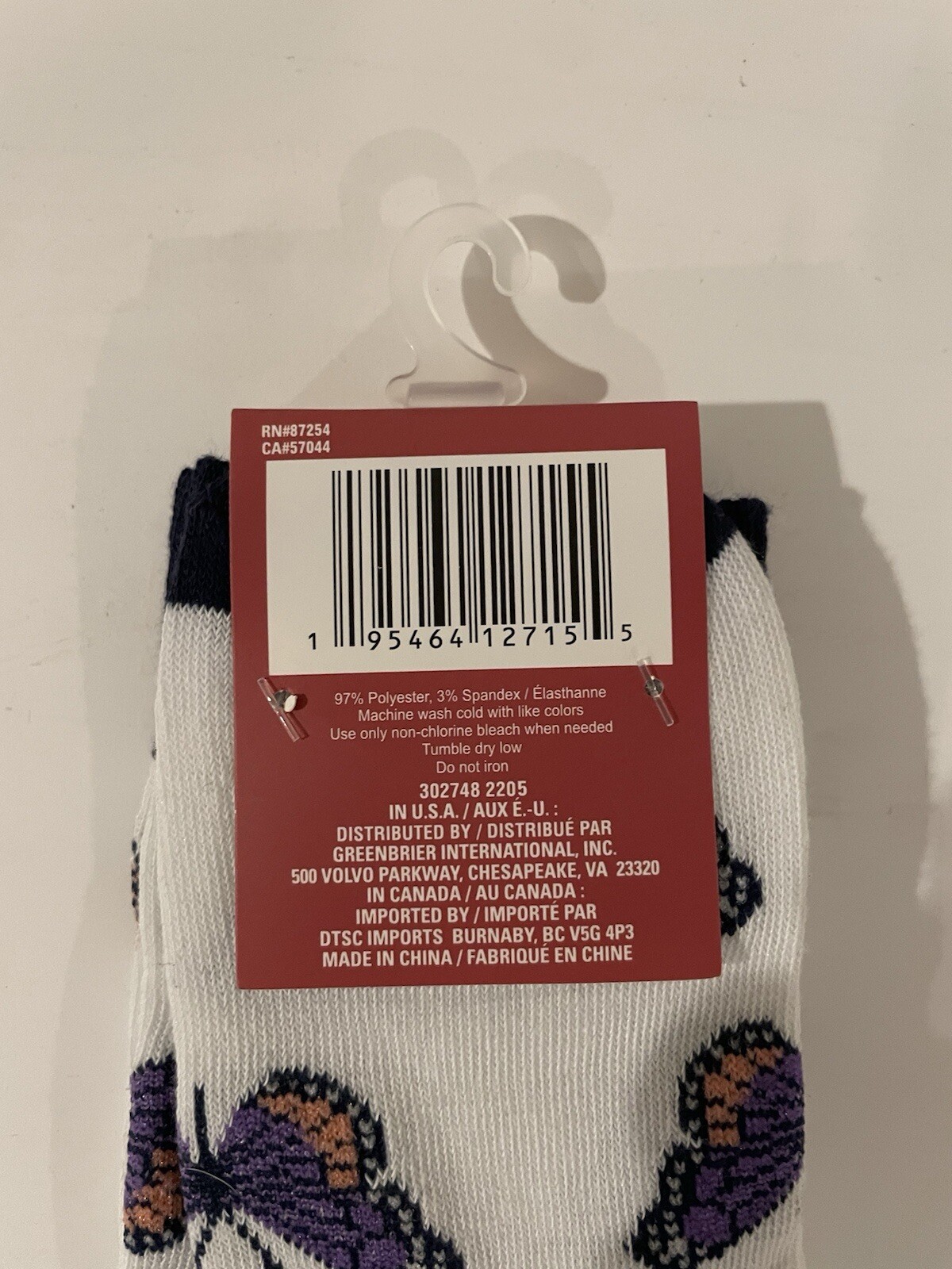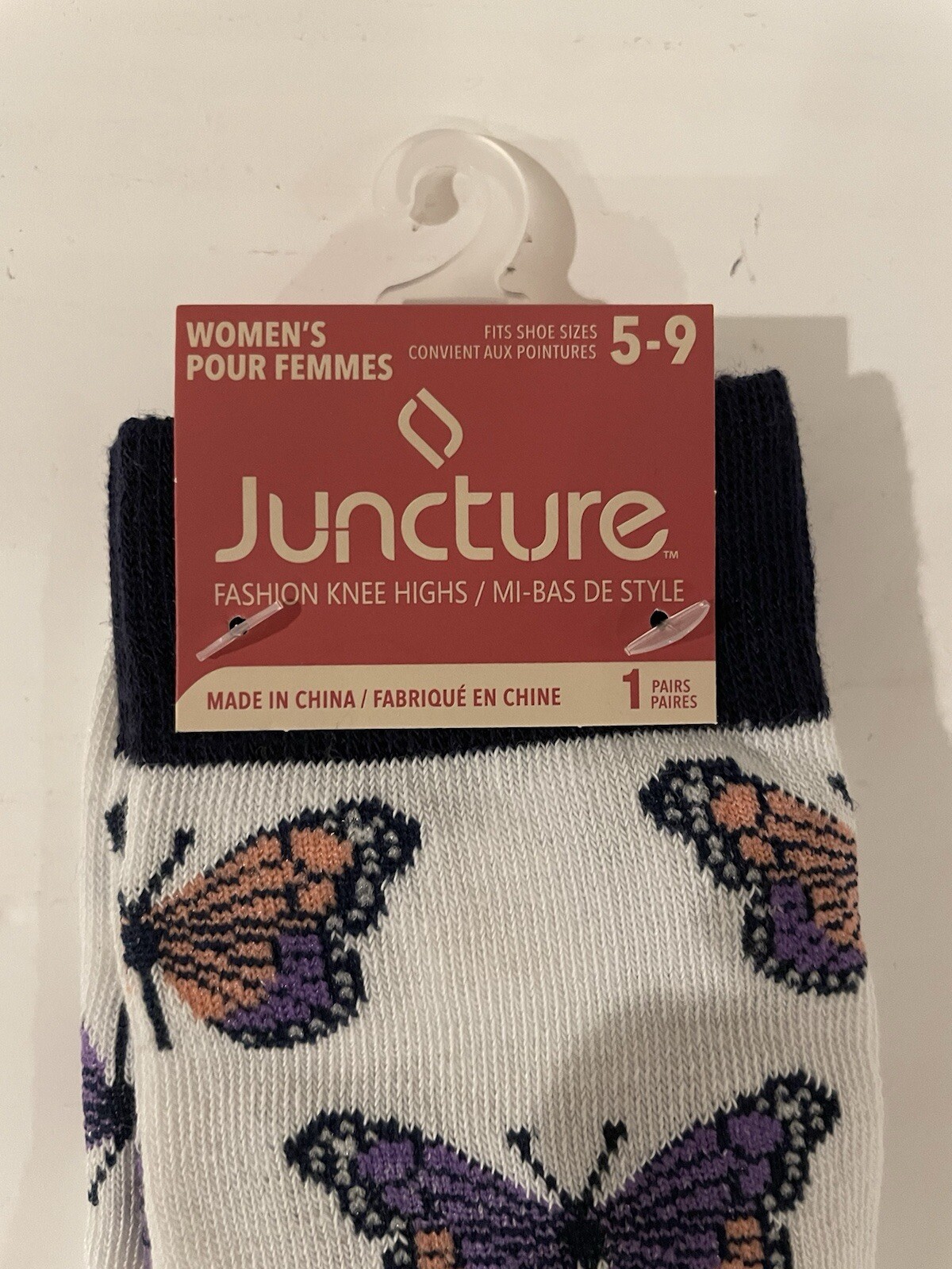 Knee High Butterfly Socks Women's Size 5-9 Juncture White Purple