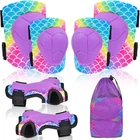 Knee Pads for Kids Adjustable Protective Gear Set with Mesh Bag Mermaid Product Details Package Dimensions : 6.5 x 5.2 x 4.06 inches; 7.83 ounces Manufacturer : PAMAID Color: Mermaid Brand: PAMAID Material: Ethylene Vinyl Acetate (EVA) Sport: Cycling Item Weight: 0.22 Kilograms 【7 in 1 Protective Gear Set】Package Includes 2 kids knee pads, 2 kids elbow pads, 2 kids wrist guards and 1 drawstring bag. Easy to carry and store protective gear for the little ones. 【Professional & Comfortable】Kids knee pads are made of abrasion-resistant, shock-absorbing and durable PP shell and thickened EVA layer to protect users from injuries during multiple sports. Breathable fabric lining and mesh surface design provide a breathable, comfortable wrap. Children are free to enjoy sports without being tied down. 【Adjustable Elastic Bands】Our Kids' Knee Pads feature adjustable elastic for the freedom to adjust to the right size, ensuring a secure fit to your child's various knee circumferences while allowing your child to move freely. 【Multiple Protection】This knee elbow pads are specially designed for children's sports safety protection, especially suitable for roller bikes, skateboard, hoverboard, bicycles, skating, ATV, BMX and other extreme sports. 【Best Gifts for Kids】Vivid unicorn pattern, easy to catch children's eye, popular with girls, help encourage children to exercise, it is a gift for your beloved child.