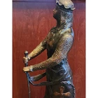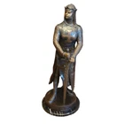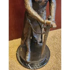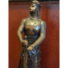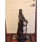 Large Knights Templar Crusader Bronze Sculpture Signed By Giancarlo Le Preur Valiant Knight Warrior Medieval Chivalry Heroism 34" 40 lbs 34x12x12 Evoke the valor and spirit of the Crusaders with this magnificent bronze sculpture signed by Giancarlo, bearing the evocative title "Le Preur" on the front, which translates to "The Valiant" in French. Standing proudly at 34 inches tall and weighing a substantial 40 lbs, this sculpture encapsulates the essence of medieval chivalry and heroism. Cast using the ancient "Lost Wax Method" it stands on a solid black marble base. Crafted with meticulous attention to detail, the armored knight commands attention as he stands atop a sleek marble base. His sturdy armor, adorned with a prominent cross on the front and back, symbolizes his dedication to his faith and cause. The knight's powerful stance, sword held downward with unwavering determination, captures a moment of resolute bravery frozen in time. This exceptional bronze sculpture not only pays tribute to the gallant spirit of the Crusaders but also serves as a captivating piece of art that enriches any space. Whether displayed in a private collection, gallery, or as a statement centerpiece, this Giancarlo-signed masterpiece invites you to embrace the courage and honor of a bygone era. CONDITION: Pre-owned. Good condition with some wear/scuffs and markings. Review photos for details PACKED WITH CARE: Ensuring safe transportation with careful packing SHIPPING: Swift shipping! Same or next business day CONTACT: Reach out with questions. We'll reply ASAP, even during TV binge-watching. ABOUT US: A family-owned and couple-run small business. She was born in a vibrant African village, while he hails from the USA. Together, they curate a collection of treasures from around the world. Discover vintage curiosities, statement pieces for your home, rare gems, and the delightfully odd. Lose yourself in untold stories of rare books or nostalgic collectibles. Home Decor, Rare books, African Art, Christmas, Nutcrackers, Sculptures, Collectibles, and more. We bring you what you want & often what you never knew you needed!