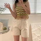 Features: Features: Square Neck, Spaghetti Straps, Cropped Fit, Rib Knit, Lovely Fringe, Embroidered Workmanship. Simple, but trendy item for any occasion. Perfect fit for casual, daily wear, weekend, outdoor, vacation and so on. Cute camisole shirt top,fabric is super soft and stretchy,comfy to your skin. Basic simple cami for tank tops, can be layered under blazers, cardigan or a kimono in fall/winter or wear it as crop top with jeans,shorts or skirts in hot weather. Please refer to the size measurement in for image before ordering. Specifications: Material:65 Cotton+35% Polyester Color:White,Green,Brown,Apricot Green Size:One Size(Chinese size ,follow the size chart to select please) Size:One Size Body Weight:40-65Kg Package Includes: 1x Crop Cami Top note: Please allow 1mm errors due to manual measurement. Due to the difference between different monitors, the picture may not reflect the actual color of the item.