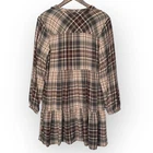 * Knox Rose Shirt Dress Women Size L Brown Plaid V Neck Rayon Button Front Boho * *Good Pre-owned Condition *Please see photos for approximate measurements (in inches), fabric make, washing instructions, and other notable details. *Purchased items are shipped out next business day.