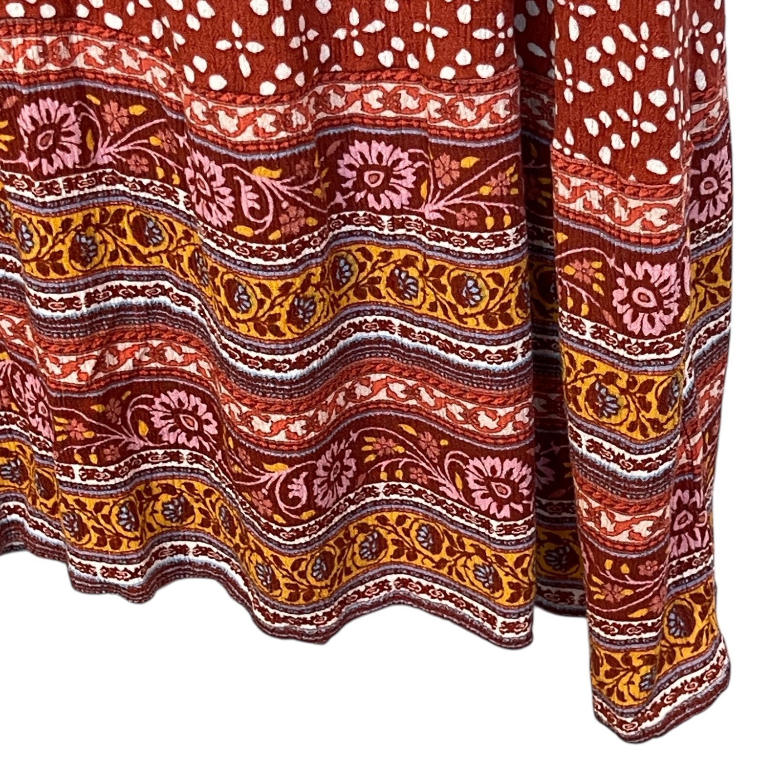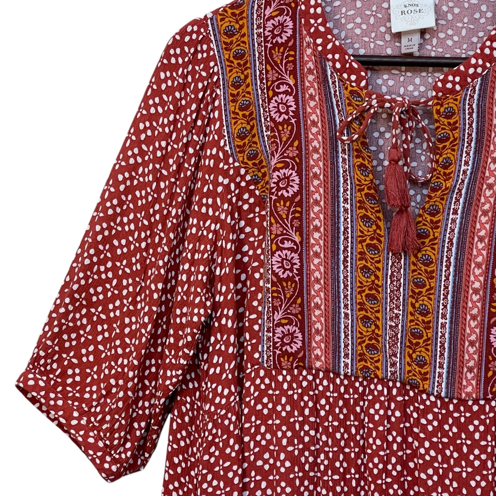 * Knox Rose Women Fit & Flare Dress Size M Orange Floral Tassel 1/2 Sleeve Boho * *Good Pre-owned Condition *Please see photos for approximate measurements (in inches), fabric make, washing instructions, and other notable details. *Purchased items are shipped out next business day.