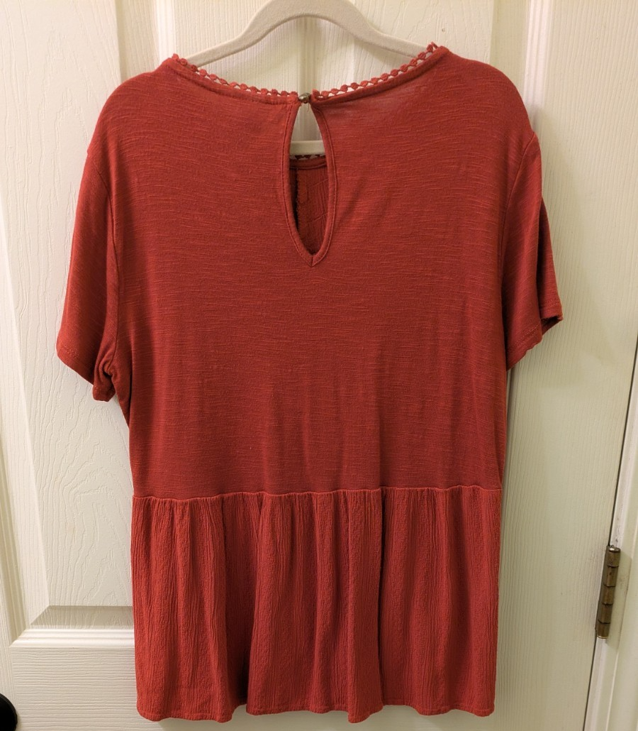 Warm-toned and beautifully detailed, this rust-colored peplum blouse from Knox Rose adds earthy elegance to any casual outfit. The textured pleats and crochet accents elevate its relaxed silhouette-perfect for layering or pairing with denim for an effortless boho look. Details: ✅ Size: Women's XS ✅ Brand: Knox Rose (Target) ✅ Color: Rust / Deep Red ✅ Self: 100% Rayon ✅ Contrast: 97% Rayon /3% Spandex ✅ Relaxed, peplum-style fit ✅ Decorative front ple with crochet trim ✅ Back button keyhole closure ✅ Soft, stretchy upper with flowy bottom ✅ Label made from recycled plastic Our price: $18 Retail: ~$28 More Deals in My Closet! Click here to see all my listings: Items for sale by repurposeco_25 | eBay