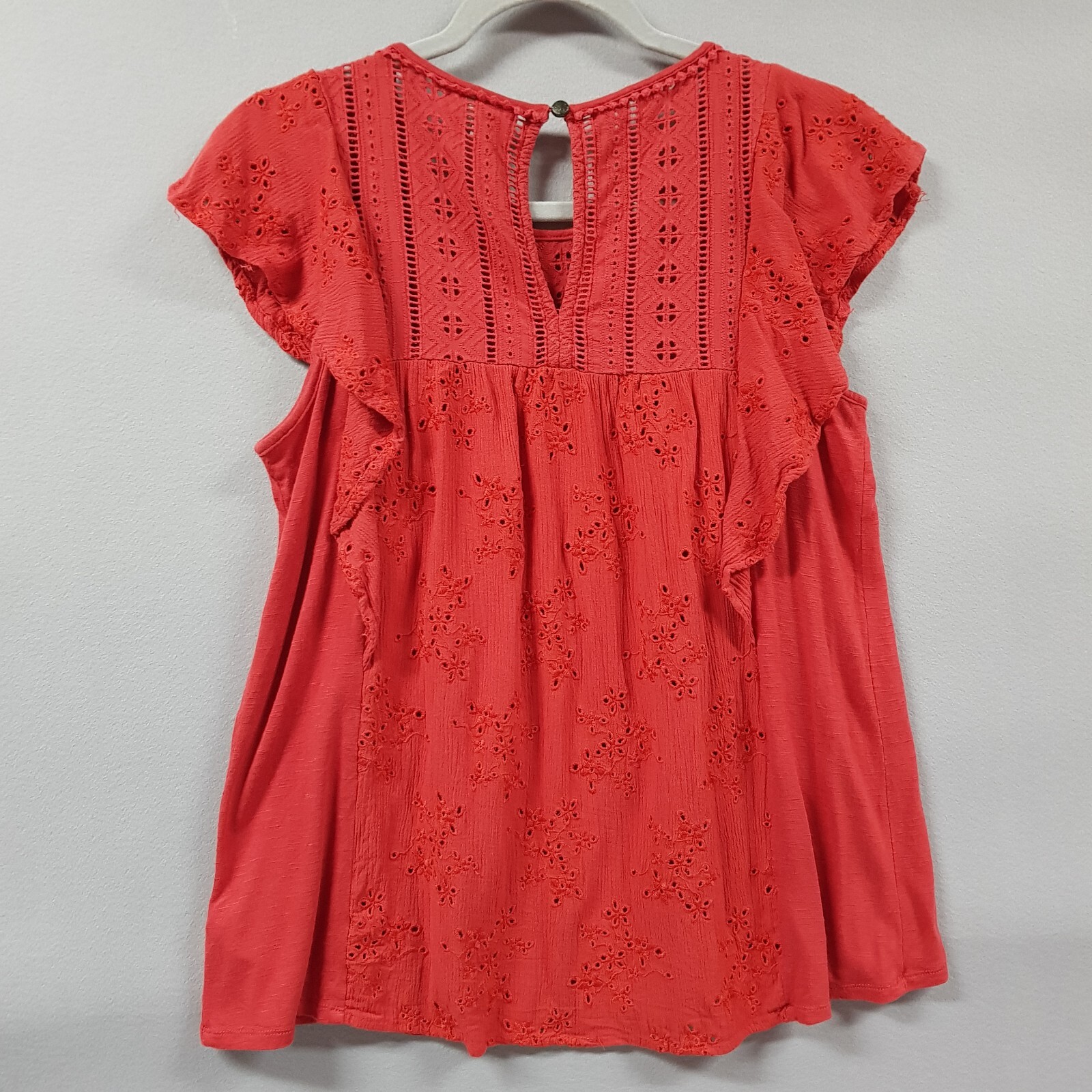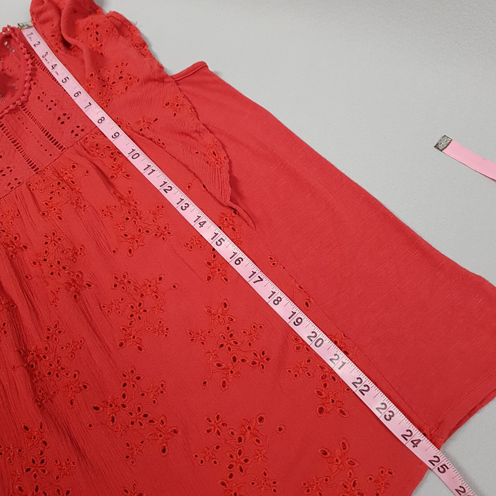 Knox Rose Top Women's sz Small Red Eyelet Short Sleeve Eyelet Ruffle Boho See photos for approximate measurements and other details. Compare sizing with your favorite garment for best fit. The actual color of some of the item may vary slightly in the photos due to photographic lighting sources. All pre-owned item has been washed / cleaned per eBay standards. Please leave a message if you have any question. For Domestic/US orders ONLY: We do offer a combined shipping discount. Shipping for 1st item is full price. Then, it's only $1.99 for each additional item. If you end up having to pay separately, we can manually refund the shipping discount after payment is made. Please notify us if that is the case so we can initiate the manual refun