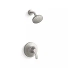 Elevate your shower experience with the Kohler Simplice Rite-Temp Pressure-Balancing 1-Handle Shower Faucet Trim Set. This sleek and modern set, finished in vibrant brushed nickel, adds a touch of sophistication to any bathroom. It is designed with water conservation in mind and features a round shower head that offers a full spray pattern for a refreshing shower. The set includes two faucet holes and is suitable for use in the shower. It is made of durable metal and is easy to install. With its exceptional features, this shower faucet trim set by Kohler is a great addition to any bathroom.