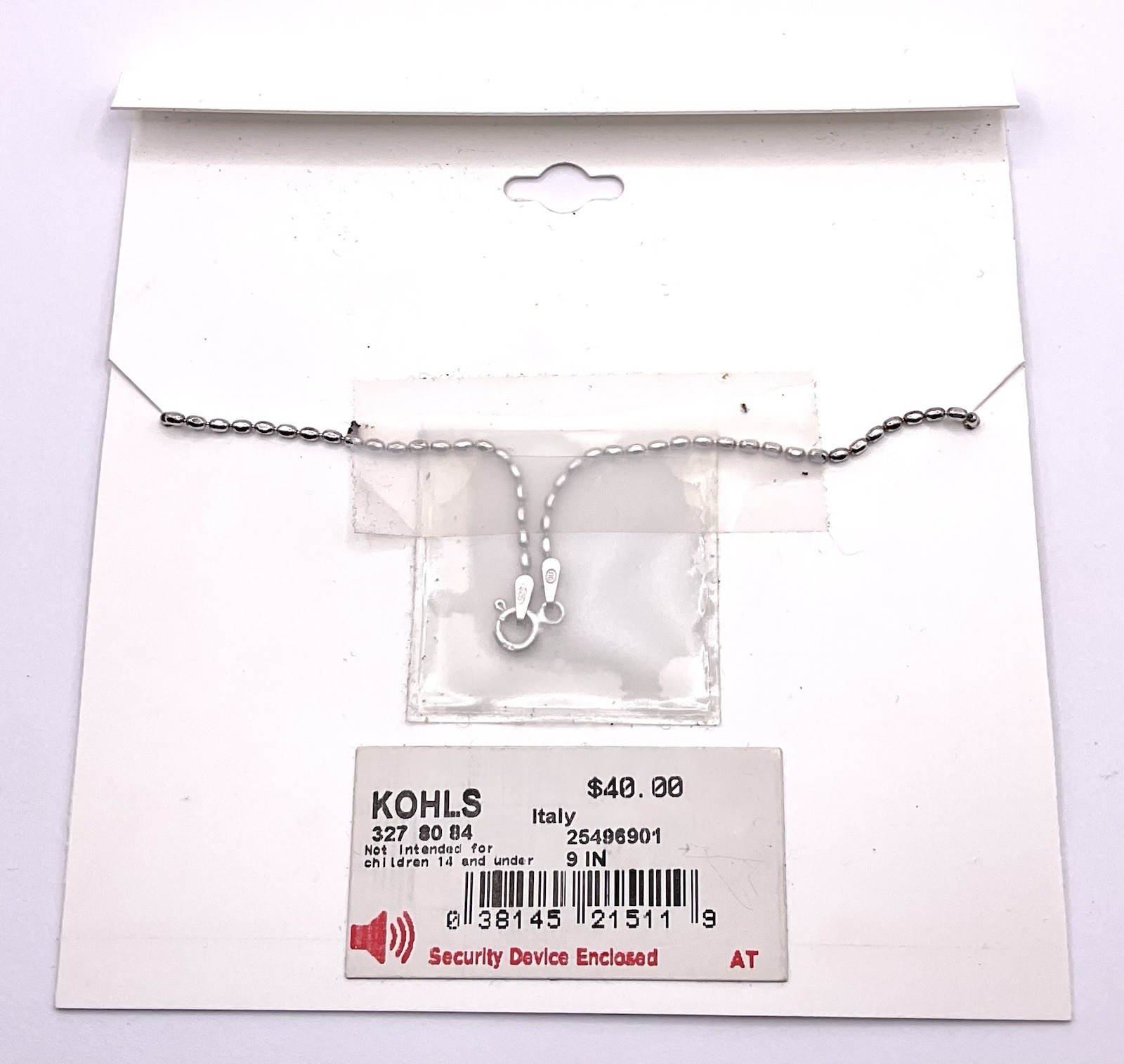 The Kohl's Summer Sterling Silver 925 Beaded Chain Linked Anklet is a stylish and elegant accessory perfect for the summer season. Made from high-quality sterling silver, this 9-inch anklet features a chic chain design with a beautiful beaded detail. The Italian craftsmanship adds a touch of sophistication to the piece, making it a versatile and fashionable choice for any outfit. Whether worn alone or paired with other jewelry, this silver anklet is sure to make a statement. We combine shipping.