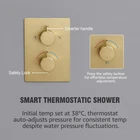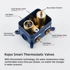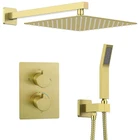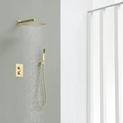 Thermostatic Shower System-12 Inch Rainfall Shower Head and Handheld-Bathroom Shower Set Contain Shower Faucet Mixer Trim Kit Valve Included,Brushed Gold Technical Details Brand KOJOX Color Brushed Gold Material Brass Finish Type Brushed Number of Handles 1 Handle Material Brass Mounting Type Wall Mount Included Components Valve Head Size 12 inches Manufacturer Shenzhen hanma shiye youxiangongsi Item Weight 14.81 pounds Product Dimensions 16.73 x 13.18 x 6.49 inches Country of Origin China Item model number KJT1207G Size 12 Inch-Thermostatic valve Style Thermostatic Valve Finish Brushed Quality Promise: All-metal solid construction. The mixing valve is made of solid brass, which is rust-free and has a long life. The 304 stainless steel rain shower head with silicone nozzle allows you to wipe away mineral deposits with just the swipe of your finger; Thermostatic shower valve: The thermostatic shower valve rapidly reaches the desired water temperature and maintains it constant, regardless of water pressure fluctuations. Enjoy a consistent rain shower without sudden temperature changes. Ultimate High Pressure Shower:Our innovative air injection technology enhances water pressure by up to 100%, simulating natural rainfall for a truly immersive experience with the large 12-inch raining sprinkler. Brushed Gold Finish:Tested and approved through the Salt Spray Test, our brushed gold finish ensures resistance to surface corrosion caused by humid environments in the shower room. Water Hammer Prevention: Our pressure balance valve is equipped with two built-in check valves, effectively eliminating water hammer noise. Say goodbye to the annoying banging sounds caused by sudden surges in water pressure. 100% Satisfaction Guarantee: If for any reason you are dissatisfied with this shower system, please let us know and we will make it right by offering a free replacement. Shipping We offer FREE shipping on all orders! We ship within Three business days of payment, usually sooner. We use a selection of shipping services such as UPS, FedEx, USPS etc. We only ship to the lower 48 states, no APO/FPO addresses or PO Boxes allowed. Local pickups and combined shipping options are not provided at this time. Return You can return a product for up to 30 days from the date you purchased it. Any product you return must be in the same condition you received it and in the original packaging. Please keep the receipt. Payment We accept payment by any of the following methods: PayPal Please pay as soon as possible after winning an auction, as that will allow us to post your item to you sooner! Feedback Customer satisfaction is very important to us. If you have any problem with your order, please contact us and we will do our best to make you satisfied. Contact Us If you have any queries, please contact us via ebay. We usually respond within 24 hours on weekdays. Please visit our eBay store to check out other items for sale! Thank you for shopping at our store.