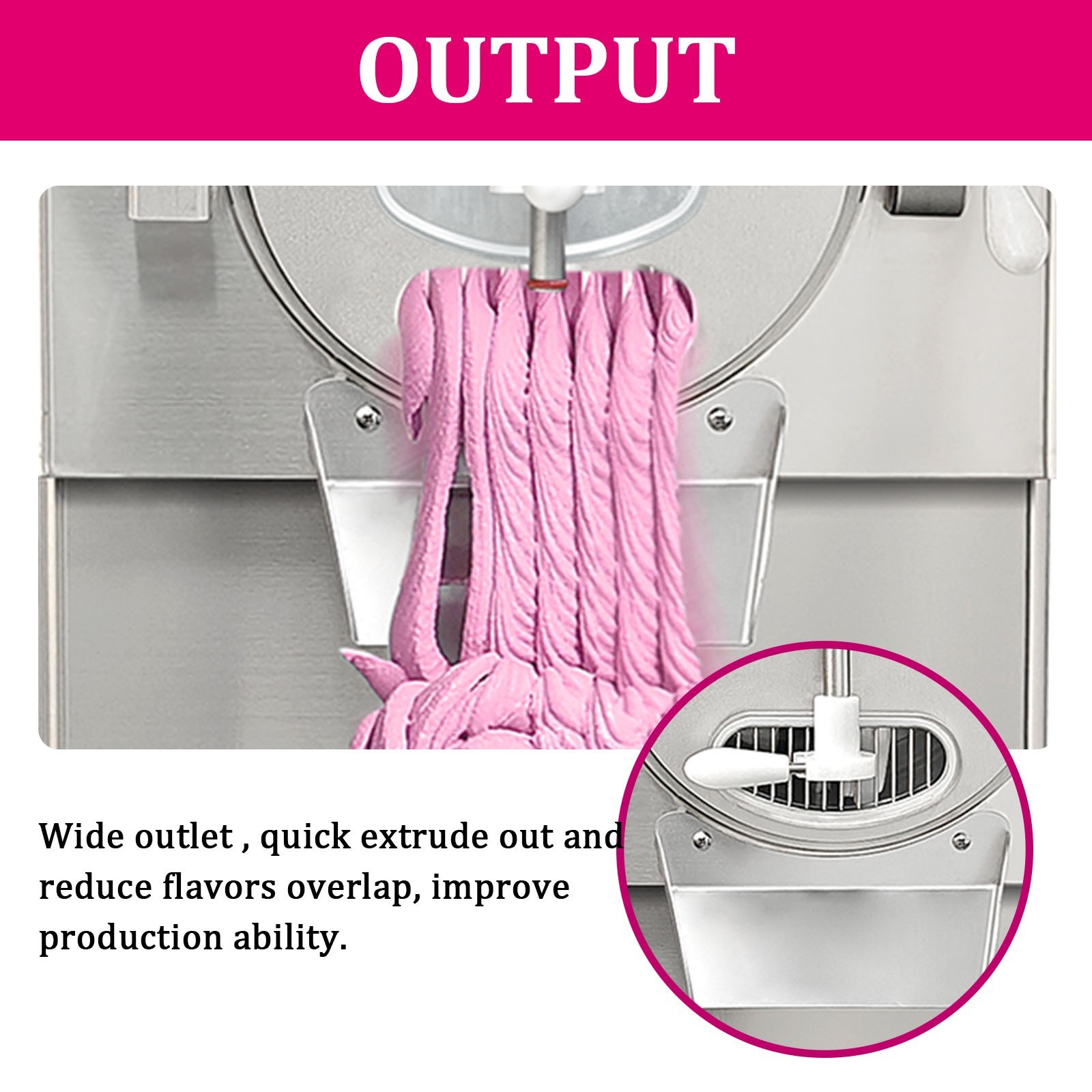 Kolice Commercial upgrade model gelato hard ice cream machine with pasteurizer, combines heating, cooling and freezing function. They can run at the same time or individually. Which improves efficiency of making ice cream or frozen desserts, it can produce Italian water ice , hard ice cream machine, intergrate pasteurizer and hard ice cream machine 【Main Features】Kolice Commercial upgrade model hard ice cream machine with pasteurizer, combines heating, cooling and freezing function. They can run at the same time or individually. Which improves efficiency of making ice cream or frozen desserts, it can produce Italian water ice , hard ice cream machine, intergrate pasteurizer and hard ice cream machine 【Specifications】220V 60HZ, power: 3600w. Air Cooling. Machine size: 21.3''x32.3''x56.5''(540x820x1435mm). Heating cylinder: 8L. Ice Cream Freezing Cylinder: 14L. Ice Cream Output: 9-11 gal/hour to make hard ice cream and italian water ice for commercial use 【Efficient Sterilization】Heating and cooling function can run automatically or by manual. Heating temperature up to 60°C~85°C (140℉~185℉) takes around 18-20mins, pasteurization cooling time takes around 18-20mins., 4.3" touch countrol panel, ETL certificate 【Food grade Material】Food grade material stainless steel stirring shaft, good performance agitator to produce finest gelato texture and density. Italy style extra strong door. Intelligent touch screen control panel, timer control, one-key automatically running, auto washing, current overload protection 【Versatile Applications】Available to use in ice cream shops, restaurants, bars, cafes, schools, milk-tea stores, snack bars, hotels, bakeries, and so on. It can be mixing and feeding any small piece of chocolates, biscuits or fresh fruits while machine is running.
