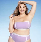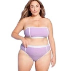 Kona Sol Women's Women's Plus Size Terry Textured Bikini - Sizes X, 1X, 2X, 3X Bottom - High Waist Leg Add a soft yet sporty look to your swim wardrobe with this Textured Solid High Waist High Leg Bikini Bottom from Kona Sol. This solid colored bottom features a flattering high waist with a high-leg design. It's detailed with chic white binding on the trim and front for a contrasting sporty look, and has a terry-textured finish for added interest. The stretchy fabric with elastic at leg openings lends comfortable movement and fit, while the opaque construction offers coverage for confident wear. Pair with the available matching bikini top for a coordinated look, or with other solid or patterned swim tops for an endless array of styling options. Kona Sol: Made for your day in the sun. 94% Nylon, 6% Spandex (Lining Polyester) Size: X (14W), Waist 38 Size: 1X (16W-18W), Waist 40 to 41.5 in Size: 2X (20W-22W), Waist 42 to 44.5 in Size: 3X (24W-26W), Waist 47 to 49 in Top - Bandeau Top Lend a sporty finish to your swim outfit with this Terry Textured Solid Bandeau with Binding Bikini Top from Kona Sol. This bandeau-style bikini top is made from soft, stretchy terry-textured fabric to keep your moving comfortably in and out of the water. It’s detailed with chic white binding on the trim and front for a contrasting sporty look. This women's swimwear top comes with detachable over-the-shoulder straps for multiple wearing options, a back hook-and-loop fastener to give a secure fit, and has removable cups that make it easy to customize your look to suit your style. Pair it with the available matching bottom or a wide variety of other bottoms for versatile styling options. 94% Nylon, 6%Spandex. Polyester Lining. Size X (14W) Bust 41 in Size 1X (16W-18W) Bust 43-45 in Size 2X (20W-22W) Bust 47-49 in