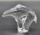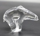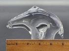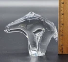 Meet your new winter buddy: a hand blown glass polar bear that won't raid your fridge or leave paw prints. This transparent ursine is the clear winner for coolest home decor piece, adding a touch of Arctic charm to your space. • Hand Blown Glass • Polar Bear Design • Clear, Transparent Finish • Unique Home Decor Piece Minor scratches on base, measuring approximately 4.5 inches tall.