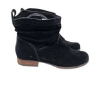 Koolabura by UGG Soft Suede Lorelei Side Zipper Slip-on Slouchy Ankle Bootie Size 7 suede upper with sloughy styling, medial side zipper, closed round toe, slip-on styling, low heel with stacked leather wrap, rubber outsole great condition Measurements: heel is .75 inch tags: gorpcore clean girl old money quiet luxury whimsigoth fairycore renaissance y2k 90's glam feminine coquette minimal festival western skater model off duty beachy beach coastal vacation travel retro girly cute going out top flirty suede slouchy ankle bootie