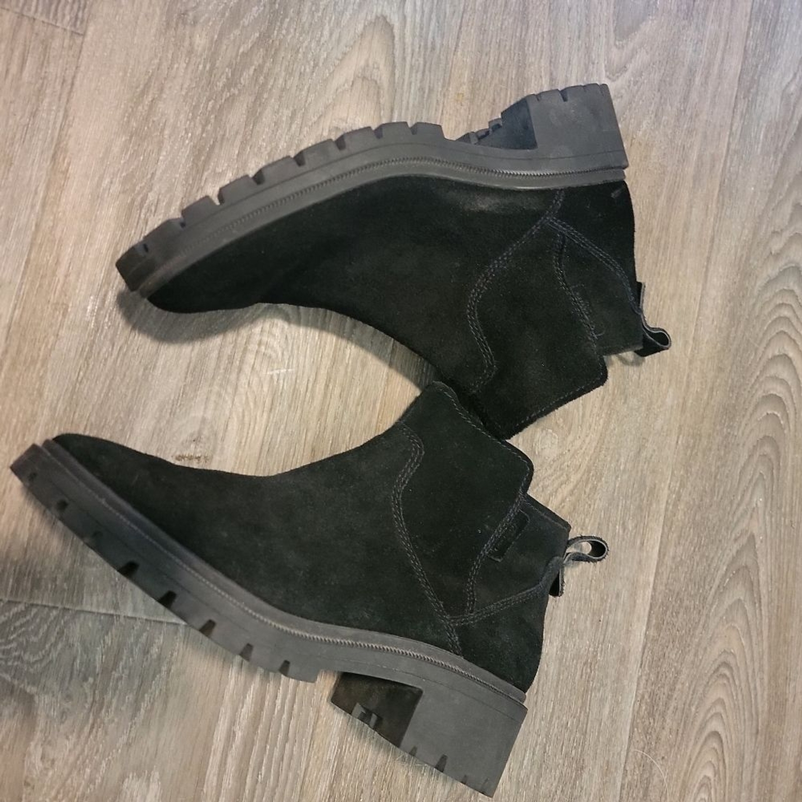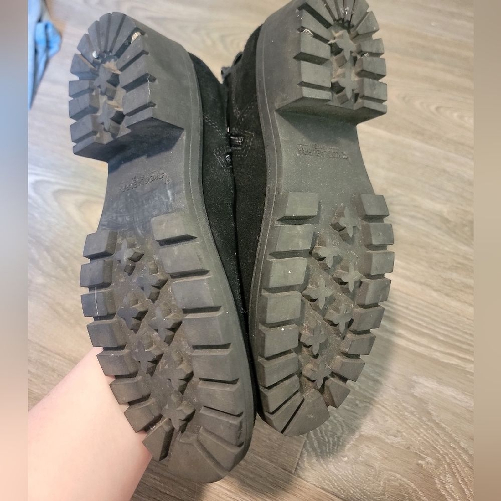 In excellent pre owned condition Size 9.5 Leather upper Pull-on style, pull tab, water-resistant upper
