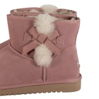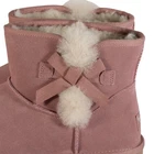 The Koolaburra by UGG Women's Victoria Mini Boot in Ash Rose, Size 11 M, is a stylish and comfortable bootie designed for casual occasions. It features a round toe shape, pull-on closure, and a flat heel for all-day wear. The boot is accented with fur trim, a stylish bow, and the brand's logo, making it a fashionable choice for the winter, fall, and spring seasons. With its ankle shaft style and solid pink color, this boot is a versatile addition to any woman's wardrobe. Made with suede upper material and faux fur lining, it offers both functionality and beauty.
