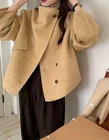 Winter Womens Lapel Collar Short Lamb Wool Fur Coat Warm Long Sleeve Short Coat