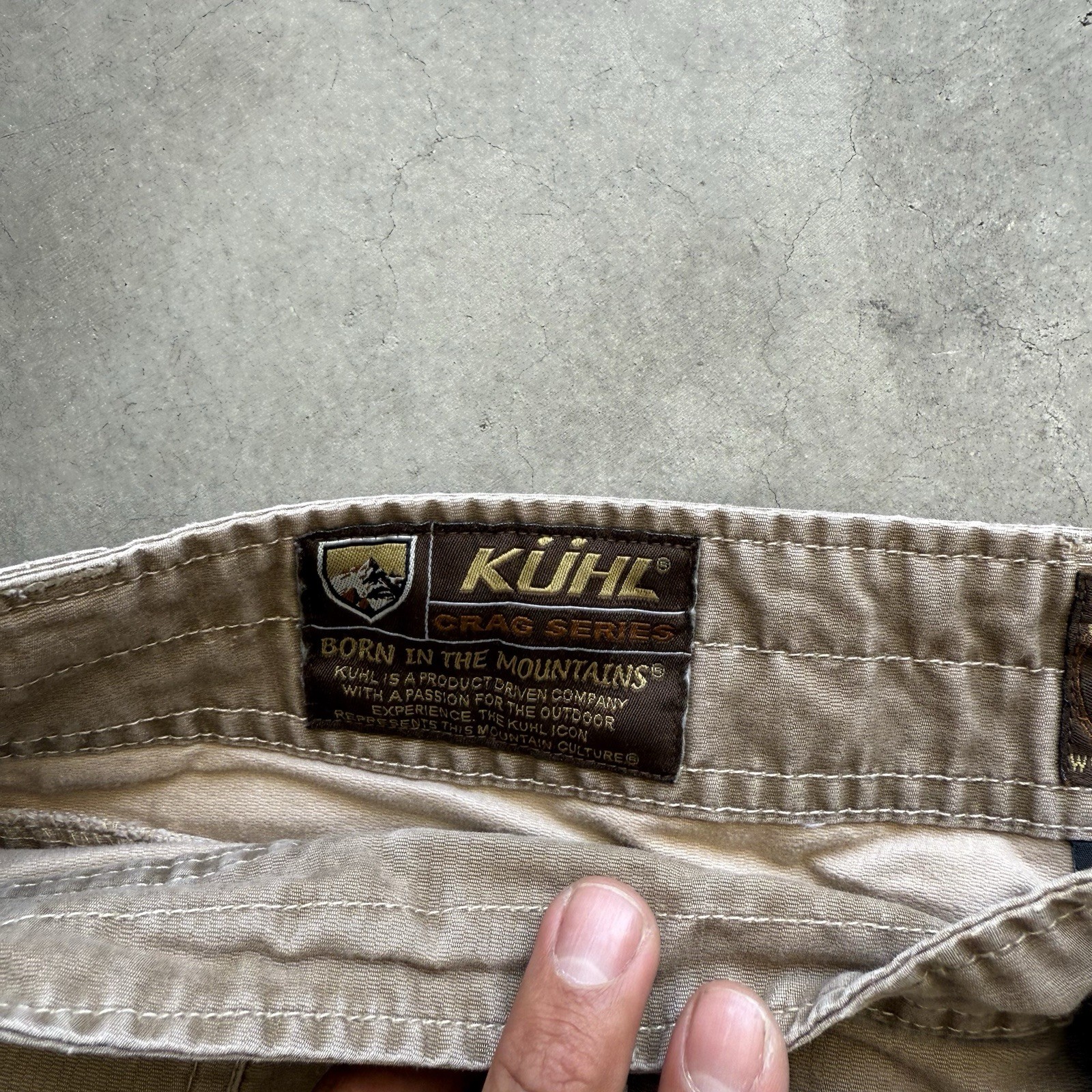 The Kuhl Crag Series Pants Vintage Patina Dye are men's hiking chinos made from a blend of cotton and spandex for comfort and durability. These khaki pants feature a vintage patina dye, adding a unique touch to the classic style. With a straight leg fit and a 5-pocket design, these pants are ideal for casual occasions and outdoor adventures. Easy to care for, lightweight, and featuring a button closure, these pants offer both style and functionality for year-round wear.