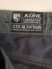 Elevate your outdoor style with these Kuhl Liberator pants. Designed for men, these pants are perfect for hiking, camping, and any adventure you want to go on. The pants are made of a combination of polyester, nylon, and cotton, making them both durable and comfortable. Featuring a solid pattern and a flat front, these pants have a mid-rise waist and a straight leg style. The pants are convertible, with a stealth zip-off feature, allowing you to turn them into shorts. They also have a button and zip closure, making them easy to put on and take off. With accents of the Kuhl logo and a nature, army, and sports theme, these pants are perfect for any occasion, whether it's for travel, casual wear, workwear, or business.