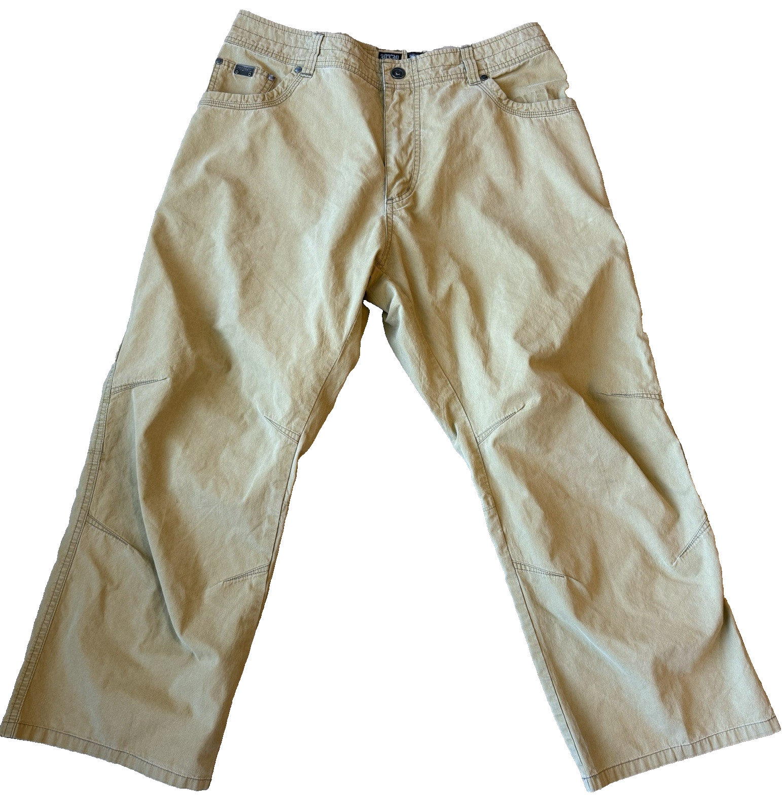 Kuhl brand Revolvr model pants in mens size 38x30 in a nice brown/tan color! These are in good condition overall with a few small stains on the pants that could easily come out in the wash! Preowned subject to fade/discoloration/stain/signs of wear.