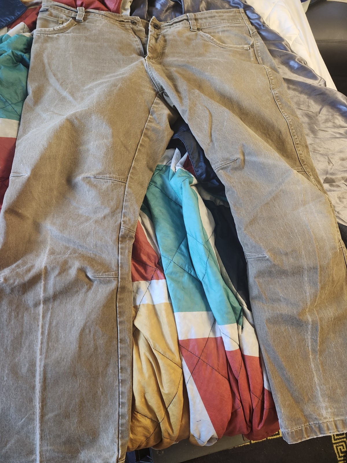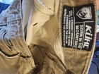 The Kuhl Ryder Pants in size 38X32 are a durable and versatile outdoor workwear option for men. Made from a stretchy spandex and cotton blend, these brown pants feature a solid pattern and flat front design with a mid-rise waist. The zip and snap closure and straight leg style make them suitable for casual or workwear occasions, while the nature-inspired logo accents add a stylish touch. Easy to care for with machine washable fabric, these Kuhl pants are a practical and comfortable choice for outdoor activities or everyday wear. disabled veteran seller,