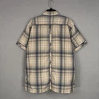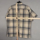 Kuhl Shirt Mens XL Beige Plaid Short Sleeve Button Front Hiking Performance Previously worn with minimal wash wear. Fabric clean with no stains, holes, or snags; buttons secure; tags intact. Brand: KÜHL Style: Mens short sleeve button-up outdoor shirt with beige, blue, and rust plaid pattern. Color: Beige with multicolor plaid. Size: Mens XL (per interior print). Material: ELÜXUR™ performance fabric, 100% polyester woven. Details: Point collar, full button front, two button-flap chest pockets with logo detail, straight hem, center back pleat for ease of movement, interior Born in the Mountains branding, and small logo tab on sleeve. Additional info: Made in China; RN# 108846. 23809 Measurements: Previous washings may change sizing on the tag. Refer to photos above for all measurements. Compare our measurements to one of your favorite garments. Measurements are approximate. All items are bagged and sealed after being photographed, then stored in a smoke free environment. Washed per eBay standards. I carefully package and ship daily. Contact me with any questions. Thanks