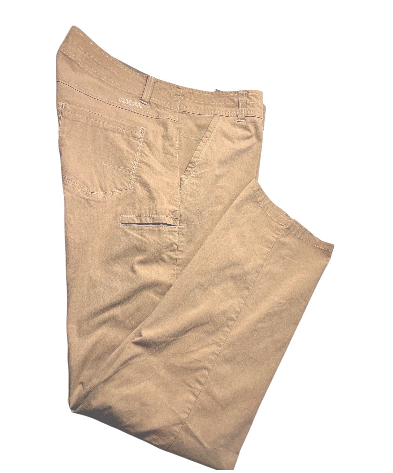 Kuhl Slax Pants Men Measure 38 x 32 (Tag 38X34)Beige Khaki Cotton Nylon Spandex Outdoors Hiking -Stains- See photos for details and measurements.