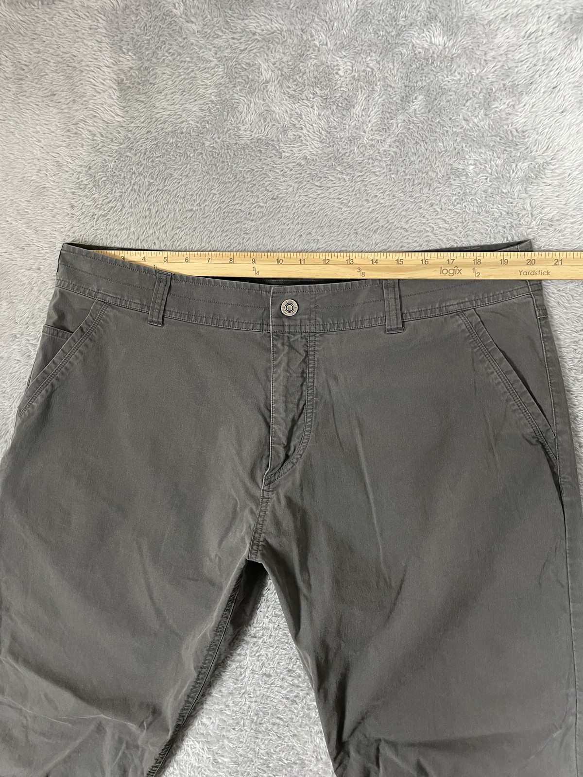 Kuhl Slax Pants Mens 40x30 Gray Klassik Fit Enduro Stretch Outdoor Hiking Casual Condition: Gently worn, no visible flaws or stains Made with Kuhl Enduro fabric: 68% cotton, 29% nylon, 3% spandex for stretch and quick dry Features: Klassik fit, stealth cell phone pocket, office-approved chino style pockets, articulated knees for ease of movement, moisture wicking, durable yet soft, incognito style back Equalizer pockets Color: Gray Tag size: 40x30 (Mens) Brand: Kuhl Zipper fly with button closure Made in Vietnam Great for hiking, outdoor adventures, or casual everyday wear