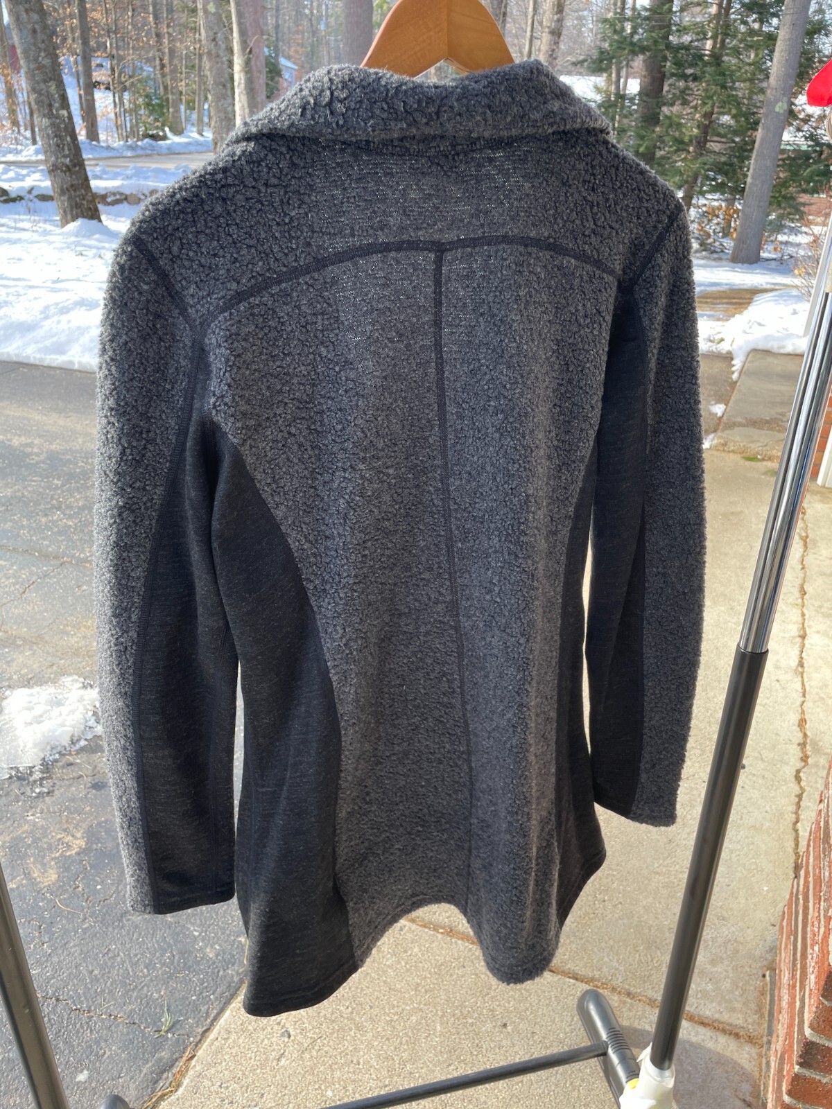 NEW Kuhl Women's L Wool Poly Mid-Length Longer Sherpa Fleece Gray Jacket Coat Chest: 21 inches across (armpit to armpit) Length:32 inches from shoulder to bottom of item I pride myself in offering a variety of quality new & used clothing at a fraction of the cost you would pay elsewhere. All of my items are clean & from a clean, SMOKE FREE home. Please check out my over 14,000 POSITIVE FEEDBACKS! !! I check everything over very carefully, however I may miss something as I am not perfect! Please contact me if you get something you feel was not described correctly so I may have the chance to make things right. Depending on how your computer monitor color settings are set, actual item may look like a slightly different color, especially items that are blue .