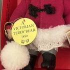 Kurt Adler Victorian Teddy Bear "1890 Collectors Corner" Porcelain Face Christmas Holding Metal Gold Tone Diary. Approximately 7 Inches