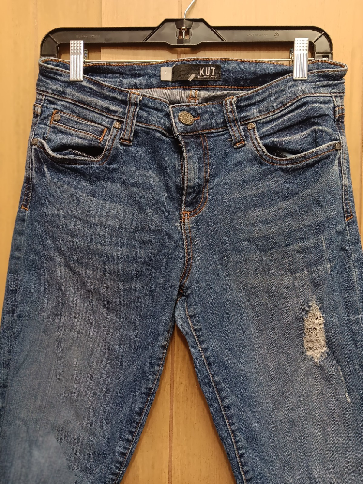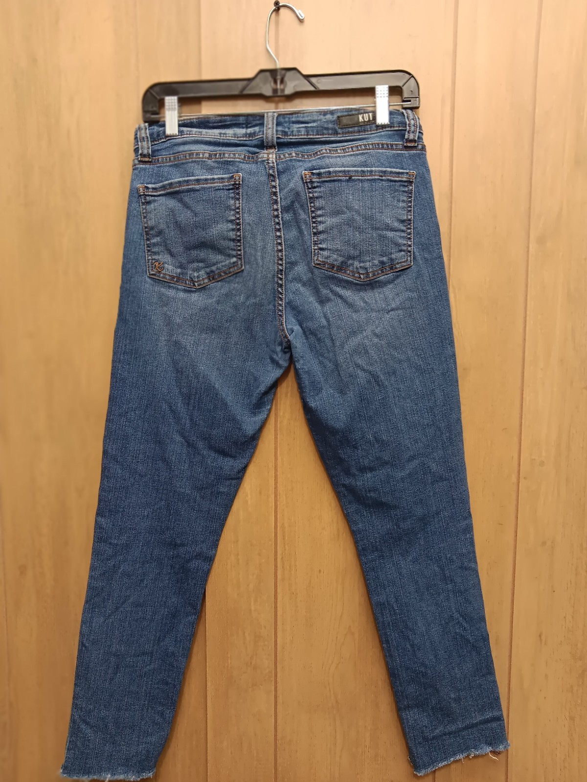 Kut From The Kloth Jeans Womens 8 Blue Medium M Condition: Gently worn, no visible flaws or significant wear Classic blue wash with subtle fading and whiskering on thighs Skinny fit, mid rise, five-pocket design Material: 98% Cotton, 2% Spandex for comfort and stretch Zip fly with branded button closure Branding: Kut From The Kloth logo on waistband and hardware Tag size: 6 (Womens) Approximate measurements provided in photos for accuracy Made in China