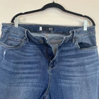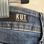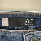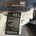 Kut from the Kloth Mia High Rise Skinny Blue Jeans Stretch 38x32 size 18 Waist: 19 inches flat measure Inseam: 32 inches Distressed left leg - see photo Pre-owned in excellent condition with no rips, tears, snags, stains, discoloration, or defects. See photos. Ask questions. thank you!