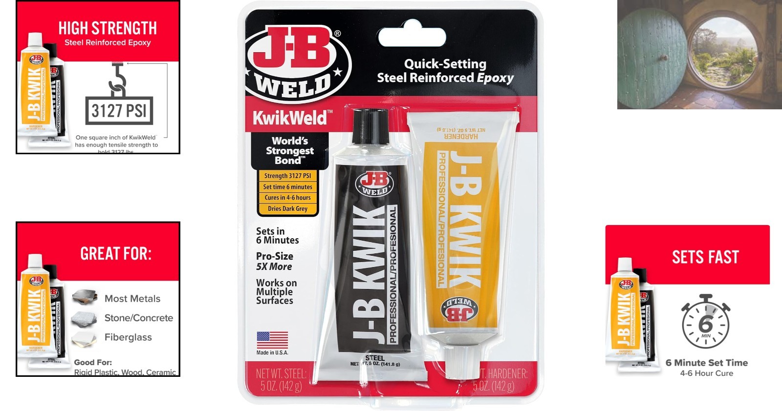 KwikWeld Steel Reinforced Epoxy Twin Pack 10 oz - Fast Drying, Waterproof Repair ‹ › ‹ › ‹ › ‹ › ‹ › ‹ › ‹ › ‹ › ‹ › KwikWeld Steel Reinforced Epoxy Twin Pack 10 oz Fast Drying, Waterproof Repair About this Product: Professional Quality: Two professional 5 OZ tubes of KwikWeld, a fast-setting version of the Cold Weld two-part epoxy system. Rapid Cure: Mix at a 1:1 ratio for a quick set time of just 6 minutes, with a full cure in 4-6 hours. Durable Finish: Once cured, KwikWeld can be tapped, filled, sanded, molded, and drilled, forming a permanent bond with a dark grey color. Exceptional Strength: Steel reinforced with a tensile strength of 3127 PSI; it can withstand temperatures up to 230 degrees Fahrenheit (110 degrees Celsius). Waterproof Performance: Fully cured, KwikWeld remains waterproof, making it ideal for a variety of applications. Applications: Versatile for use on: Metal Plastic & PVC Wood Concrete Ceramic & Tile Fiberglass Why Choose KwikWeld? If you seek dependable, fast, and effective repairs, KwikWeld Steel Reinforced Epoxy is your ultimate solution. Providing a robust, lasting bond for multiple surfaces, it empowers not just professionals but also DIY enthusiasts. Its superior tensile strength and impressive temperature resistance ensure that your repairs remain intact under stress. With the ease of use and the guaranteed strength, KwikWeld is an essential addition to your repair toolkit. Don’t settle for less—experience the reliability of the Cold Weld two-part epoxy system. Order now and restore your materials to their glory! Shipping Free & Fast Shipping - We offer free shipping to most of the USA with a normal delivery time of 3-7 days. However, due to the current situation, additional delivery time (up to 3 weeks) may be required for some items. Alternative Carriers - We may use alternative carriers (e.g. USPS, FedEx, UPS, etc.) to ensure your package arrives safely and on time. Due to the use of multiple carriers, we are unable to provide a tracking number automatically. Handling Time - Orders are processed and shipped within 1-2 business days of receiving cleared payment. Shipping Restrictions - Shipping to Alaska, Hawaii, Puerto Rico, Guam, and other US territories may incur shipping charges or delivery restrictions. Please contact us before ordering, or your order can be refunded/cancelled. State Restrictions - There may be restrictions based on your state of purchase. For example, certain items may not be shipped to California due to state regulations. Contact for Tracking Updates - If you require tracking updates or have any concerns about the delivery of your order, please feel free to contact us, and we will be happy to assist you. Return 30-Day Hassle-Free Returns - We want you to be completely satisfied with your purchase. If you are not, you can return the item within 30 days of receiving it for a full refund or exchange. Easy Return Process - To start a return, simply contact us and we will provide you with a prepaid return shipping label and detailed instructions. Restocking Fee - There are no restocking fees for returns. However, the buyer is responsible for return shipping costs if the return is not due to a seller's error. Refund Processing Time - Refunds will be processed within 5 business days of receiving the returned item in its condition. Payment We accept all major credit cards, PayPal, and Apple Pay for your convenience. Your payment information is secure and encrypted to ensure a safe and seamless transaction. Please complete your payment within 3 days of purchase to avoid any delays in shipping. Feedback Your feedback is extremely important to us. We strive to provide the best products and customer service possible. If you are satisfied with your purchase, please take a moment to leave us a positive review. If you have any concerns or issues with your order, please contact us before leaving negative feedback. We are committed to resolving any problems and ensuring your satisfaction. Contact Us If you have any questions or concerns, please feel free to out to our customer support team. You can contact us through the eBay messaging system. We are available Monday to Friday, 9:00 am to 5:00 pm EST, and we will do our best to respond to your inquiry within 24 hours. Buy it now and enjoy a pleasant shopping experience! Model: epoxy adhesive MPN: epoxy_adhesive Expiration Date: epoxy adhesive Unit Quantity: 10.0 ounce Type: 5 Minute Epoxy Unit Type: oz