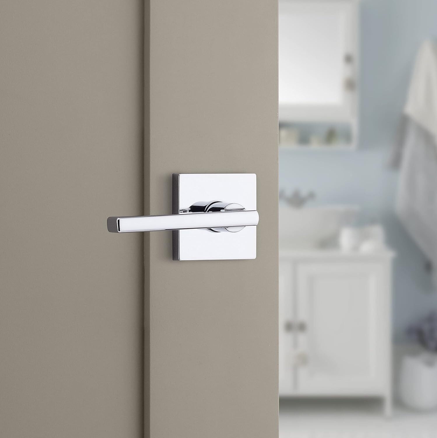 Kwikset Halifax Interior Privacy Door Handle with Lock, Door Lever For Bathroom and Bedroom, Polished Chrome Reversible Keyless Push Button Lock Door Lever