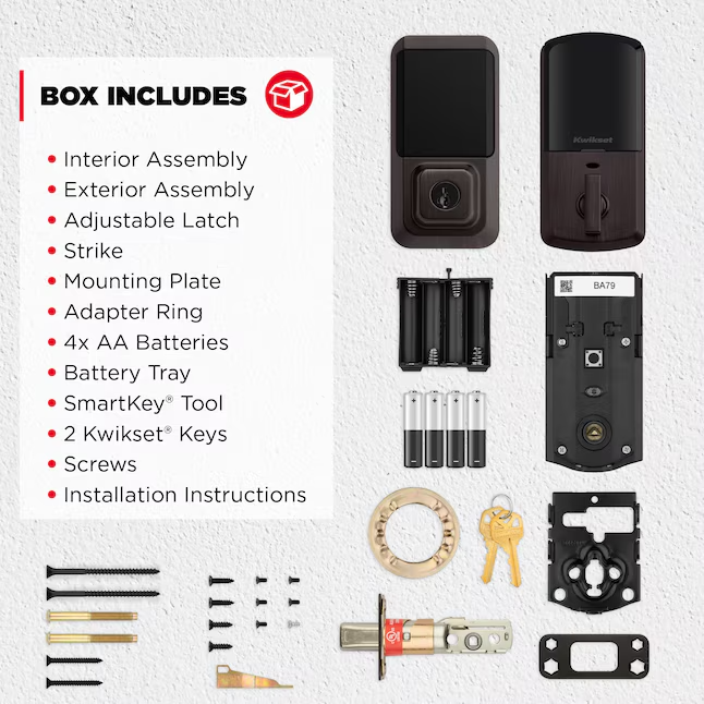 ORDERS SHIP SAME DAY AS PURCHASED Please message with any questions! Unlock simplicity, connectivity and smart living with Halo® Touchscreen. Control Halo® Touchscreen from anywhere with the Kwikset® app (no hub required), and integrate it with a smart home platform to use voice commands and create helpful automations. Enjoy the freedom and flexibility of remote access, keyless entry and customizable access codes for all your family’s needs. CONTROL FROM ANYWHERE: Wi-Fi enabled smart door lock (no hub required), use the Kwikset app to remotely lock and unlock, share guest access, view activity history and more SHARE ACCESS WITH GUESTS: Backlit touchscreen supports up to 250 access codes for keyless entry; use the Kwikset app to share temporary, scheduled or permanent access codes with family and guests SMART HOME INTEGRATION: Works with Amazon Alexa or Google Home, control your lock with your voice and create helpful automations that keep your home secure INTRUSION DETECTION: Instant notifications in the Kwikset app alert you of any unusual lock activity, including invalid code attempts or lock tampering AUTO-LOCK SECURITY: Set a duration for your door to lock automatically after entry or exit for added safety and peace of mind; perfect for keeping your hands free and getting in and out in a hurry EASY INSTALL: Do it yourself, installs in minutes with just a screwdriver, fits doors between 1- 3/8" and 1-3/4" thick with adjustable deadbolt backset from 2-1/8" to 2-3/4"