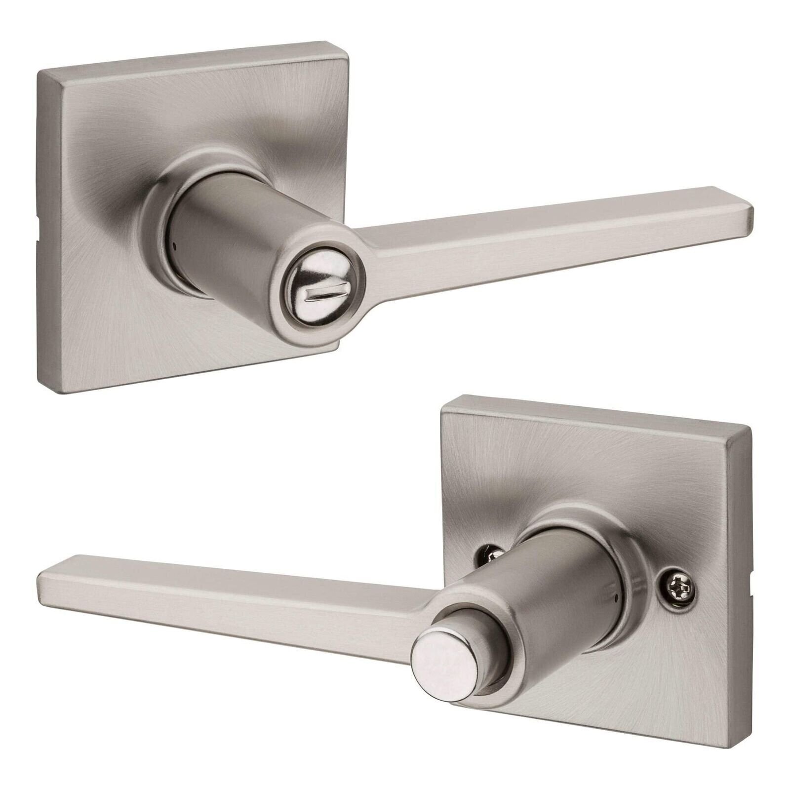 Kwikset Safe Lock Daylon Lever Square Rose Privacy Lock Satin Chrome For use on interior doors where a privacy locking function is required, such as a bedroom or bathroom Fully reversible lever, can be installed on both right handed and left handed doors Latch has adjustable backset 2-3/8" to 2-3/4" to fit all standard door preparations Easily installs in minutes with just a screwdriver Lifetime mechanical and finish warranty