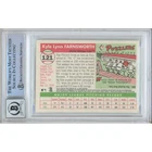 Add a rare and valuable piece to your sports memorabilia collection with this Kyle Farnsworth autographed 2004 Topps Heritage card. This hard-signed treasure comes with an impressive Beckett Authentication Services (BAS) authentication number of 00016501578 and an Beckett Grading Services (BGS) autograph grade of 10. This sports trading card is made of high-quality card stock and is an licensed trading card. It is a standard-sized card with card number 121. The Kyle Farnsworth signed Topps Heritage card is a great addition to any collection for a baseball fan or Chicago Cubs memorabilia collector. Autographed in Blue Sharpie. Kyle Farnsworth Autographed Chicago Cubs 2004 Topps Heritage Baseball Card #121. This signature has been authenticated and Encapsulated by the Experts at Beckett Authentication Services (BAS). Certificate Number 00016501578. This signature has been graded by the Experts at Beckett Grading Services (BGS) featuring a 'Auto 10' grade.