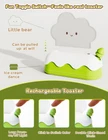 L LOHAS LED Cute Desk Decor Cloud Lamp Night Light for Kids, Kawaii Green Product Details Base Material: Plastic Product Dimensions: 5.12"D x 2.36"W x 3.15"H Lamp Type: Desk Lamp, Table Lamp Shade Color: Green Switch Type: Push Button Style: Cloud Brand: L LOHAS LED Color: Green Special Feature: Brightness Adjustable, Cordless, Rechargeable Light Source Type: LED Material: Plastic Room Type: Nursery, Living Room Recommended Uses For Product: Decoration Power Source: Battery Powered Shape: Cloud Number of Light Sources: 1 Connectivity Technology: USB Included Components: Battery Age Range (Description): Kid Is Waterproof: true Mounting Type: Tabletop Number of Items: 1 Lighting Method: LED Control Method: Remote Indoor/Outdoor Usage: Indoor Specific Uses For Product: Decoration Water Resistance Level: Waterproof Installation Type: Tabletop Connectivity Protocol: Usb Voltage: 1.5 Volts Is Cordless?: Yes Manufacturer: GK Lighting Part Number: A-TB-00309-CLGR-N Item Weight: 7.4 ounces Batteries: 1 Lithium Ion batteries required. (included) Special Features: Brightness Adjustable, Cordless, Rechargeable Batteries Included?: Yes Batteries Required?: Yes Product Dimensions : 5.12 x 2.36 x 3.15 inches; 7.37 ounces Batteries : 1 Lithium Ion batteries required. (included) Manufacturer : GK Lighting Base Material: Plastic Product Dimensions: 5.12"D x 2.36"W x 3.15"H Lamp Type: Desk Lamp, Table Lamp Shade Color: Green Switch Type: Push Button Adorably Unique Design: This charming night light showcases an adorable cloud-shaped design that cleverly resembles a toaster, complete with a switch reminiscent of one. It brings a fresh and delightful experience to your space. Three Color Modes: Tailor your lighting experience with three color modes: Warm Light Mode for a cozy ambiance, Single Color Mode for a minimalistic look, and Multi-Color Mode (cycle for 8 color)to create a vivid play of light and shadow. Portable Charging & Long-lasting Battery: With a 2000mAh battery capacity, frequent recharging becomes a thing of the past. Additionally, it features a 15-minute timer function, eliminating the need for manual shut-off and offering you an intelligent and comfortable user experience. Wid Application: From bedside tables to desks, and even office setups, this light seamlessly fits in, creating a warm and inviting illumination in various settings. Ideal Gift for Kids: This toaster-shaped night light is a delight for children of all ages. Its captivating design and gentle glow will win the hearts of both kids and youngsters. As a gift, it stands out as a creative and practical choice, bringing endless joy to the recipient.
