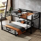 Key Specifications Origin : Vietnam Color : Sleek Black Material : Premium Metal (Frame & Slats) Size : Twin Over Full (Twin: 75''x39'' | Full: 75''x54'') Assembled Dimensions : 76.96''L x 77.36''W x 49.60''H Weight Capacity : Upper Bed (250 lbs) | Lower Bed (350 lbs) Product Weight : 115 lbs Package Details : 1 Package (77.75''L x 16.75''W x 7.90''H, 120.37 lbs) Mattress Requirement : 6'' Thickness Recommended (Box Spring NOT Required) Assembly : Required (All Tools & Instructions Included) Why Choose This Bunk Bed? ✅ Ultra-Sturdy Construction : Built with high-quality metal frame and solid metal slats, this bunk bed offers exceptional stability and long-lasting durability—designed to withstand daily use for years to come. ✅ Space-Saving Essential : The L-shaped design maximizes floor space, while the open area underneath the lower bed provides endless customization options (storage, seating, workspace, etc.). Ideal for compact living spaces! ✅ Top-Tier Safety Features : Equipped with full-length guard rails on the upper bunk for added protection, plus anti-slip metal slats that keep mattresses securely in place—no shifting or squeaking! ✅ Hassle-Free Assembly : Comes with detailed, easy-to-follow instructions and all necessary tools. Assemble your new bunk bed in no time without additional purchases. ✅ No Box Spring Needed : Durable metal slats provide strong, even support for your mattresses, extending their lifespan while eliminating the need for extra box springs. Premium Guarantees for Your Peace of Mind 1-Year Manufacturer Warranty : We stand behind the quality of our product! Enjoy a 1-year warranty covering manufacturing defects and structural issues. 30-Day Free Return & Exchange : Not completely satisfied? Return or exchange your bunk bed within 30 days of delivery—no questions asked, free of charge. 用一张兼顾功能、时尚和可靠性的双层床升级您的家。非常适合家庭、大学生或任何想要优化空间的人——今天就下单吧!