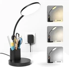 Lámpara de escritorio con portalápices LED: esta pequeña lámpara de escritorio viene con un portalápices y un soporte para teléfono, lo que te ayuda a organizar tu escritorio y ahorrar espacio. También puede cultivar hábitos de orden en los niños. Además, se puede utilizar como soporte para teléfono para ver películas o videos durante el tiempo libre. Un recordatorio amistoso: usar un teléfono en entornos con poca luz puede dañar tu visión, pero nuestra lámpara de escritorio puede ayudar a proteger tu vista. Lámpara de escritorio para oficina en casa: esta lámpara de escritorio cuenta con 56 cuentas LED que brindan 800 lúmenes de luz. Las luces suaves y sin parpadeos evitan la fatiga visual durante un uso prolongado. Con un alto CRI, los colores se reproducen de manera realista, lo que la hace adecuada para leer, escribir, dibujar y hacer manualidades. Lámpara de escritorio LED de color y brillo ajustables: esta pequeña lámpara de escritorio presenta luz cálida, natural y fría con tres temperaturas de color diferentes, así como ajuste de brillo del 5% al ??100%. Satisface completamente las diversas necesidades de temperatura de color y brillo para sus propósitos de estudio y trabajo. Ajuste flexible de cuello de cisne de 360°: la lámpara de escritorio ajustable se puede ajustar 360° con cuello de cisne para un mayor rango de iluminación y flexibilidad, lo que le permite ajustarla con facilidad y dirigir la luz hacia donde desee. Lámpara de escritorio táctil LED: esta lámpara de escritorio táctil le permite presionar brevemente para ajustar diferentes temperaturas de color y presionar prolongadamente para ajustar diferentes niveles de brillo. También tiene la capacidad de recordar el último ajuste de brillo y temperatura de color que utilizó, lo que lo hace conveniente para usar cada vez que la enciende.