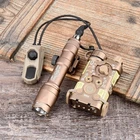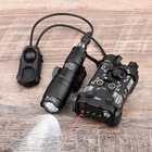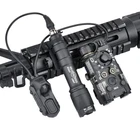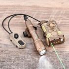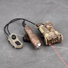 NGAL LED Flashlight Green or Red laser and IR laser ·Optional high and low output power operation mode (double-click the main switch button to turn on the high output mode) ·Function with IR laser,Red laser, green laser and LED lighting ·The laser can be zeroed ·Integrated main body button switch and remote control switch .material: Metal .For 20mm rail .Used by CR123A*1 or 16340*1 battery M300A SCOUT LIGHT Remote Pressure Switch Momentary On Powered by 1x CR123A (NOT inclode) Length : approx 110mm 350 lumens Meterial:Aluminum