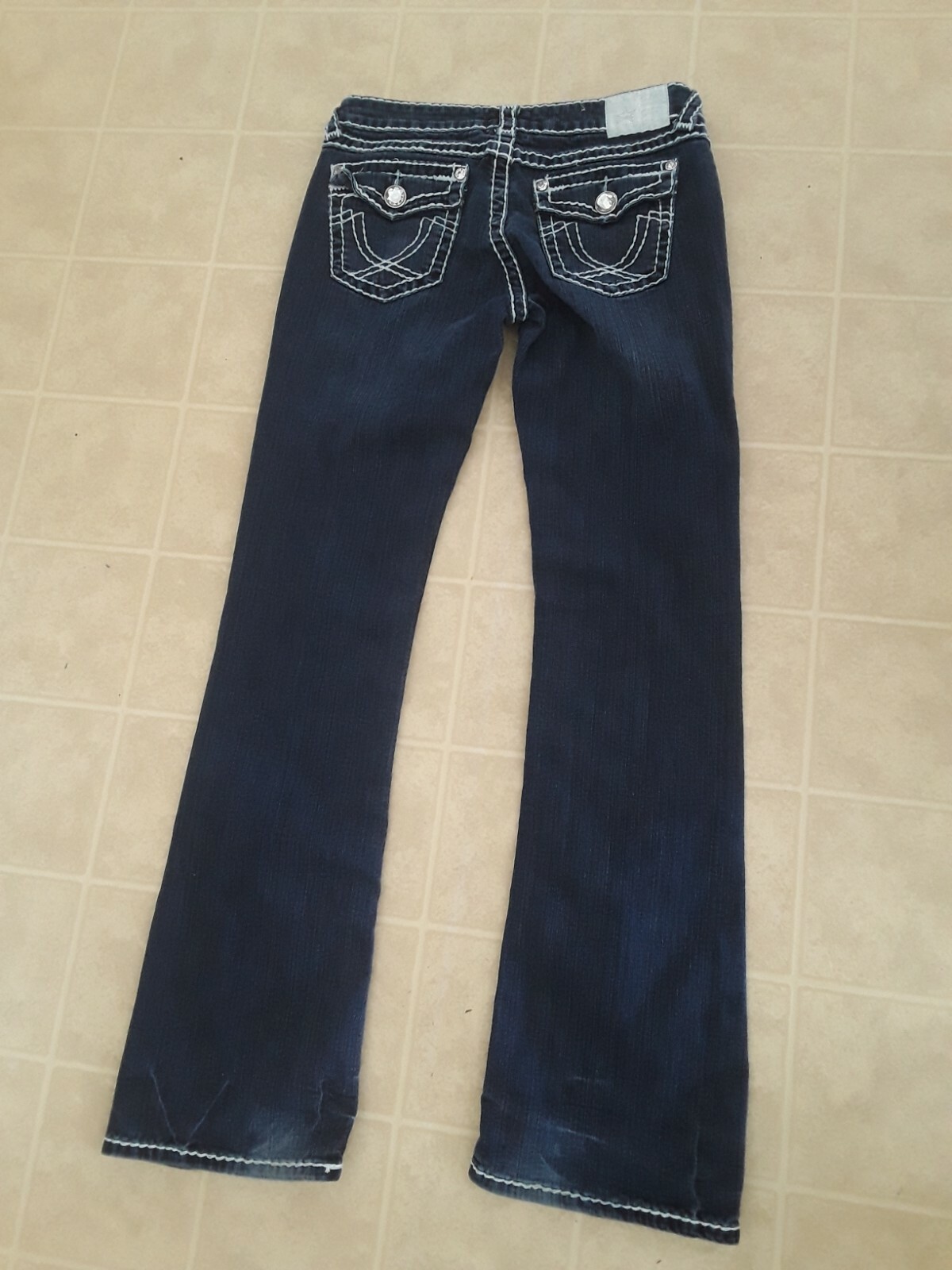 LA Idol USA 7 Rhinestone Studded Medium Wash Denim Bootcut Flap Pocket Jeans Waist : 26" Inseam: 32" Rise: 7.5" Leg Opening : 9" Zipper: yes Buttons: 1 : AT Combined Shipment: USA : Highest item shipping cost + $3.00. for each subsequent item.Or, you can purchase as many items as you choose and pay the flat rate of $ for your Priority Mail Large Flat Rate Box which covers your entire order. Please read the disclaimer below. INTERNATIONAL SHIPMENTS: Highest item shipping cost [+ Item Weight.] for each subsequent item. Please read the disclaimer below. DISCLAIMER on Shipping Costs: Our intention is to keep our shipping costs as low as possible. However, depending on the item purchased (weight) and the destination, shipping rates can vary; especially 30 Day?s No Questions Asked Returns Policy: Your satisfaction is very important to us. We have a 30 days NO QUESTIONS ASKED returns policy. The item must be returned in the condition in which it was purchased. If there are labels/tags they should not be removed. If they are, the item will be sent back to you. ANY SHIPPING COSTS WILL NOT BE REFUNDED. BOTH WAYS, receiving and any returns. Please contact us for the return shipping address and authorization. ALL COMMUNICATIONS MUST BE IN WRITING & TAKE PLACE THROUGH THE EBAY SITE ONLY. No private direct email correspondence. A customer care rep. will respond to you within 24 hrs (Mon-Fri). Once we have received the merchandise and inspected it, please allow 72 hours for a refund to be issued. NO See my other listings for more great items! We accept PAYPAL. Also we have a virtual terminal with PayPal through which we can accept Visa, MasterCard, Amex, and Discover. If you do not have a PayPal account, it takes virtually minutes to open International shipments: PLEASE DO NOT PAY until we determine your shipping costs. Most of our items also have an International Flat-Rate. Although, if due to the destination or the weight we are unable to honor the rate mentioned in the item?s listing, we will cancel your order and leave you positive feedback. Usually we use the US Postal Service. The best international rate for an international shipment is First Class (up to 4 lbs.)If your items exceed 4 lbs. we may pack them into two separate packages (and notify you of this).You still are eligible to take advantage of the combined shipping rates, even if we have packed them into two separate packages. The fees for packaging, shipping, insurance, Customs Duty Charges on international shipments are all the responsibility of the Buyer and are not included in the purchase price. If the item(s) are gifts, we could indicate ?GIFT? on the customs form so you would avoid paying more on duty.