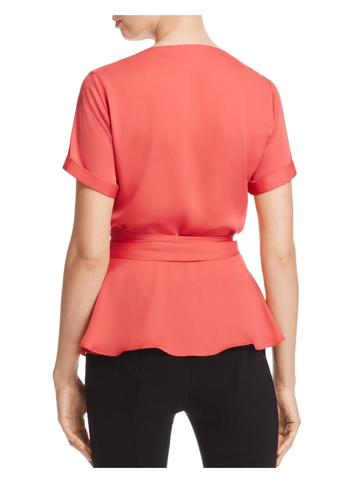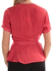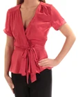 This coral wrap top is absolutely stunning—the V-neck and short sleeves make it so flattering and perfect for summer. The fabric feels luxurious, and even though it was a display item, it looks brand new. Great find for the price, especially since it’s originally $138! The wrap design adds a chic touch, and the color is vibrant yet elegant. Hand wash care is easy, and the fit is true to size. Love it!