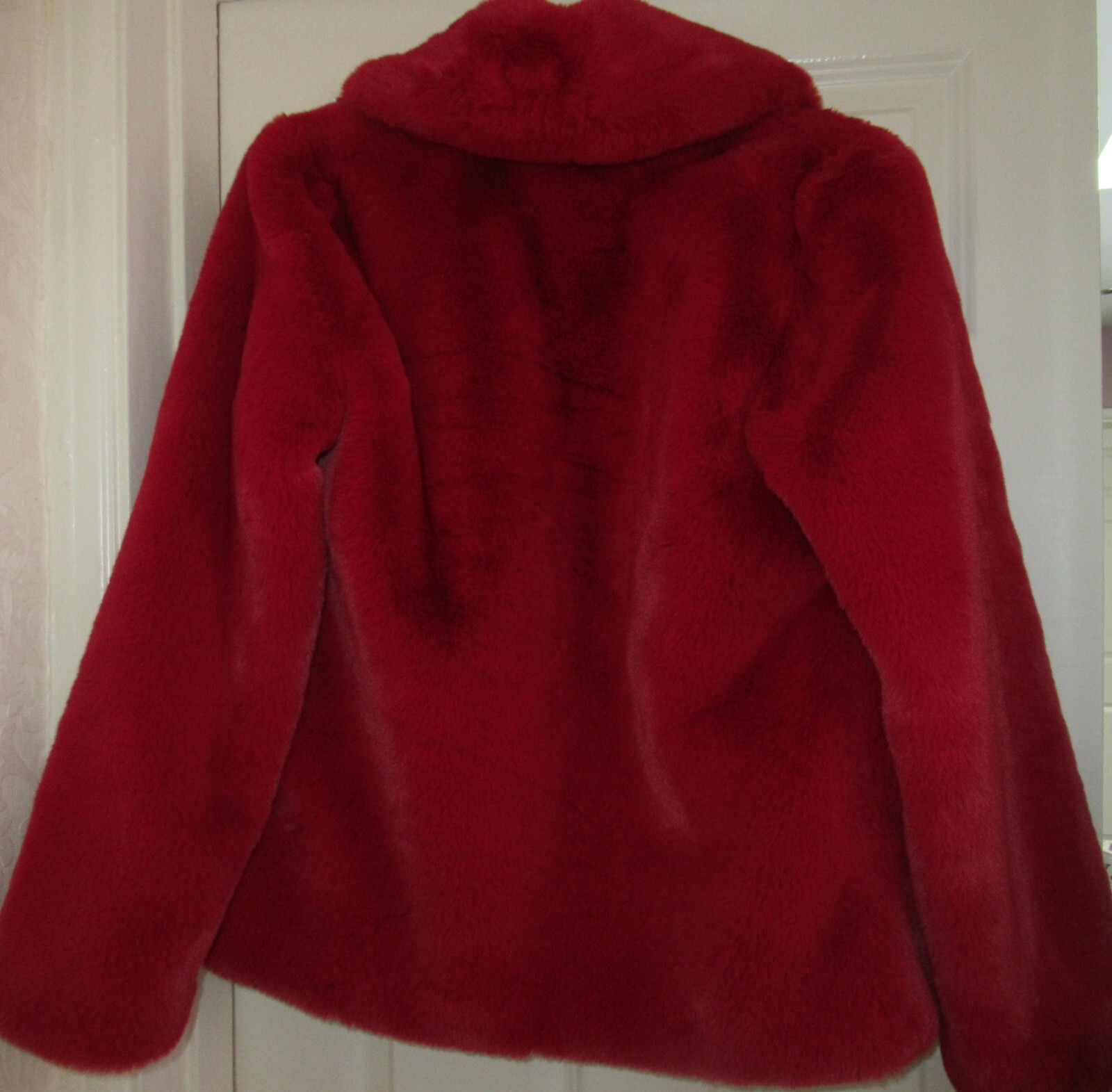 Ladies Very red faux fur coat Size 10 In excellent condition 840g sp