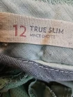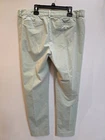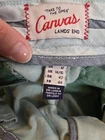 These Lands' End pants are designed for women in a size 12, featuring a slim bootcut fit made from mint green cotton canvas with stretch for comfort. The pants have a flat front, zip and button closure, and come with a belt for a personalized fit. With a preppy style and breathable fabric, these khakis are suitable for travel, casual outings, or workwear during the summer, fall, or spring seasons. They also include pockets for added functionality. Perfect for those who appreciate easy care garments with a touch of classic elegance.